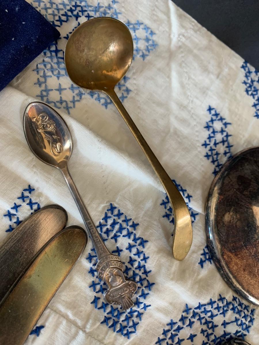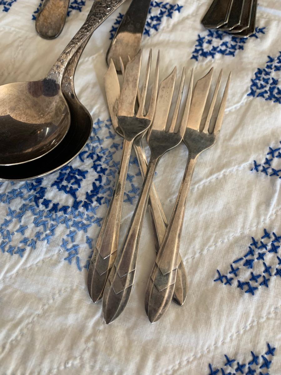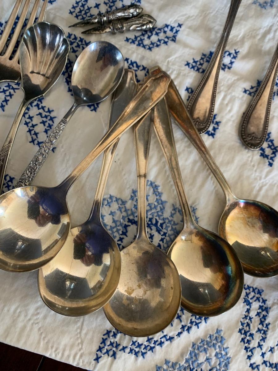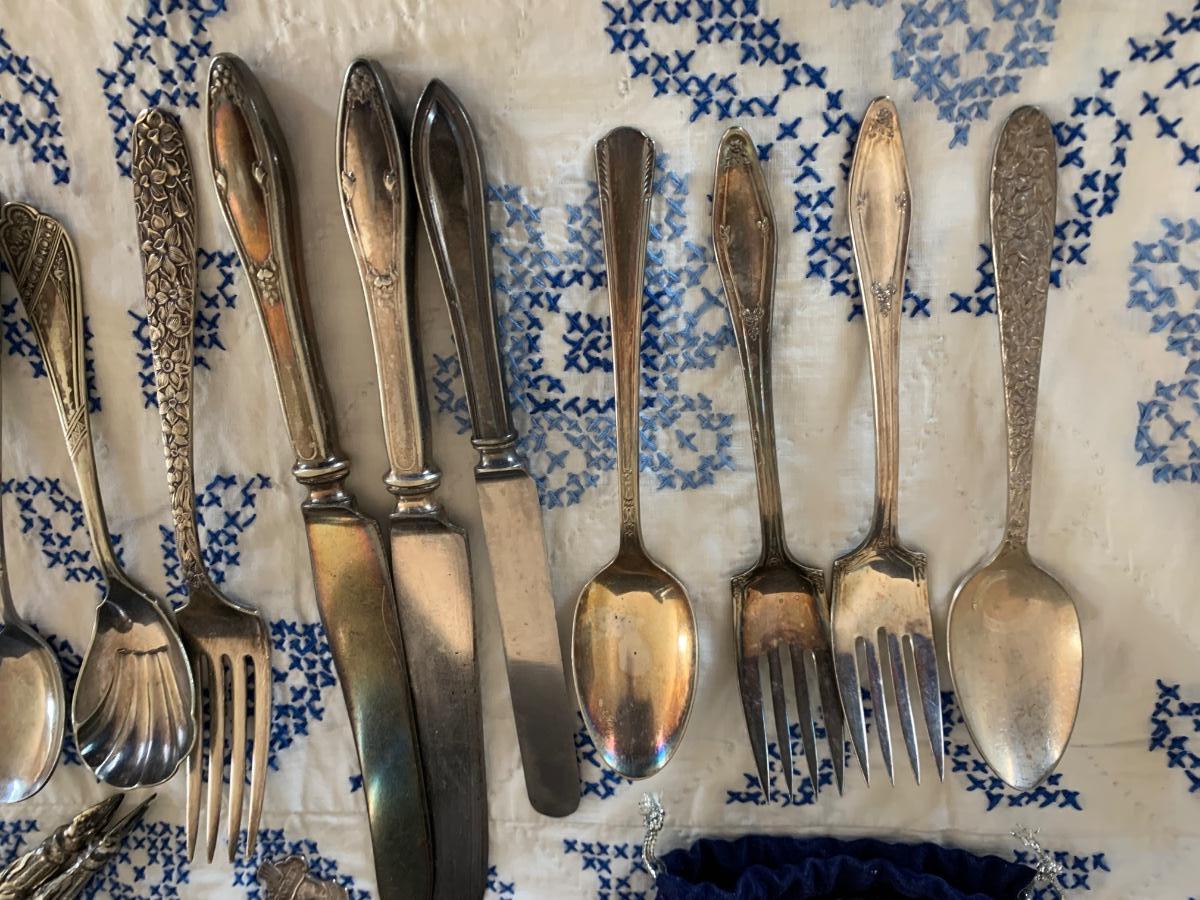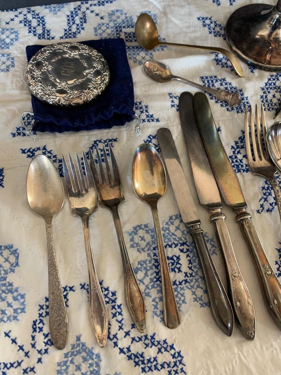 Large Silver Plate Lot Looking Glass Flatware Vase