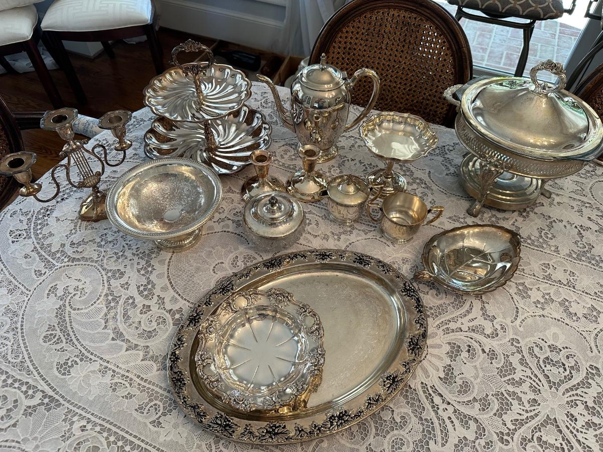 MISC SILVERPLATE SERVING PIECES AS PICTURED