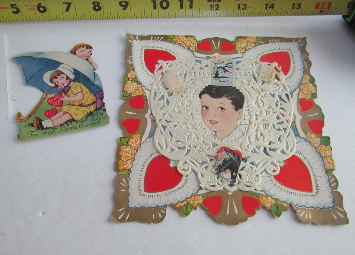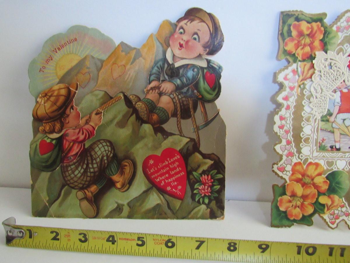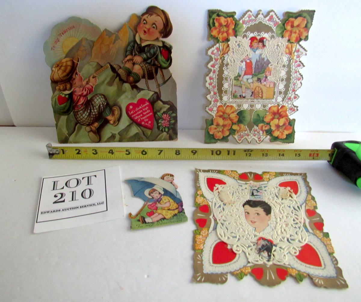The mechanical one has a torn rope and bends, is German. The lacy one on top is missing some lace and the lacy one on bottom is missing some stickers but is a very easy fix if you have old stickers to put on. The little one is fine. Shipping is available on this lot with additional shipping and handling fees. See our terms for details.