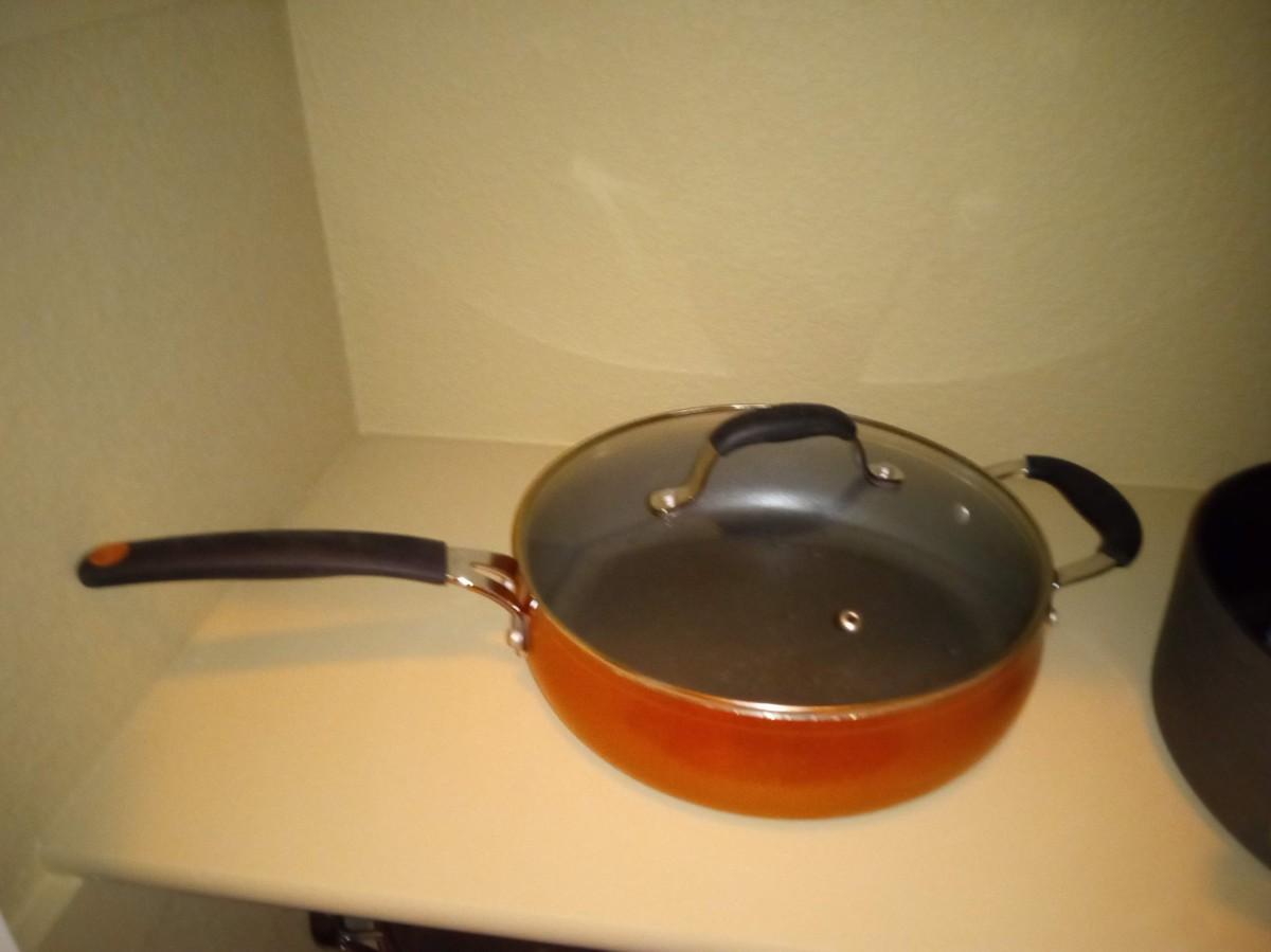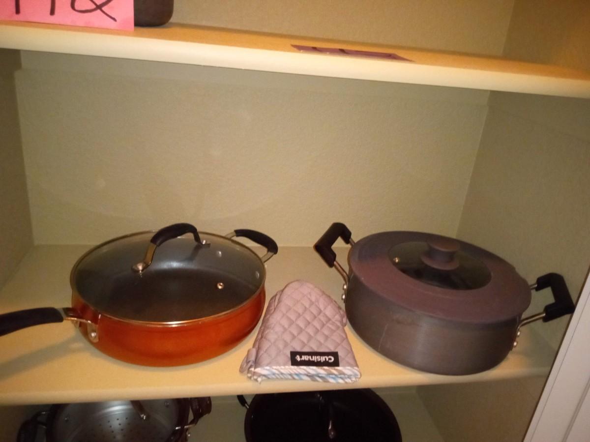 LARGE SKILLET, DUTCH OVEN AND CUISINART OVEN MITT