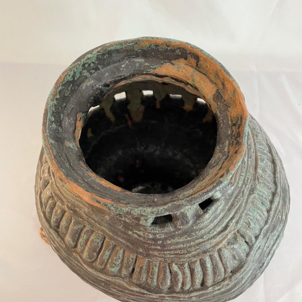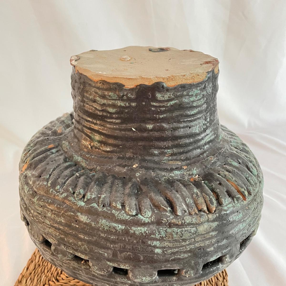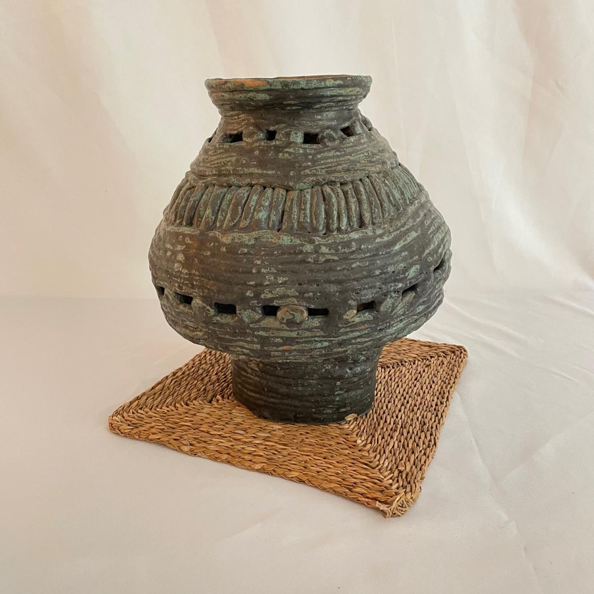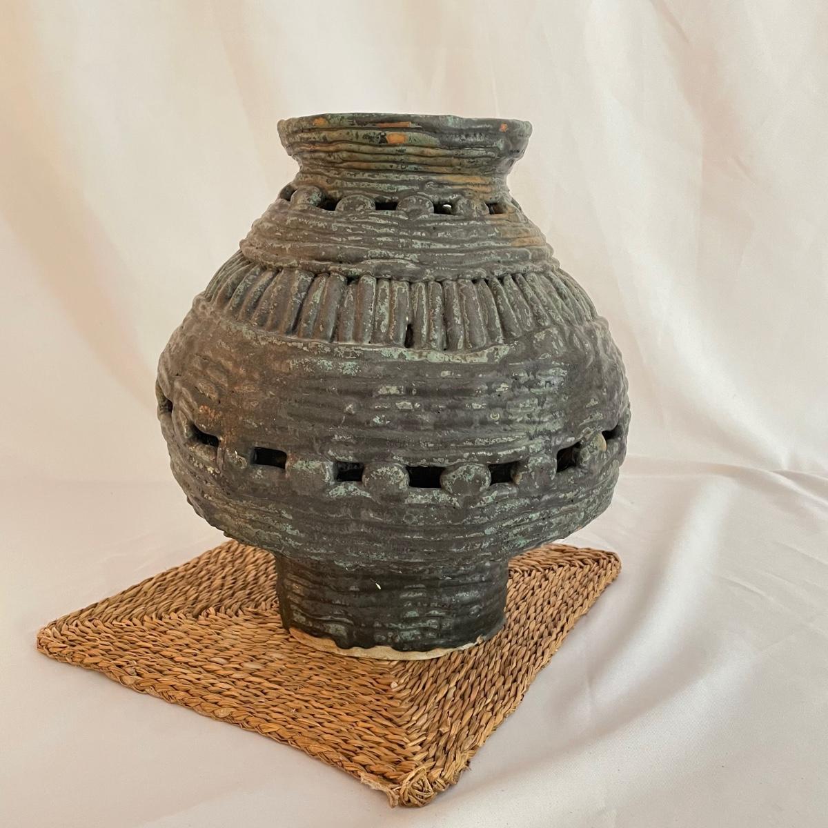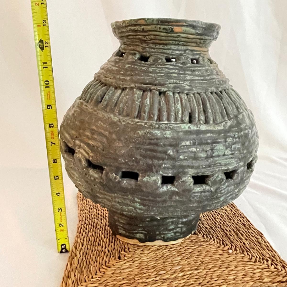 Unique handmade slab rolled clay pot. Pot is well built with an intricate basket design. Piece was previously used as an umbrella and cane stand.. The talented daughter of the owner made this piece. See images. Shipping available.