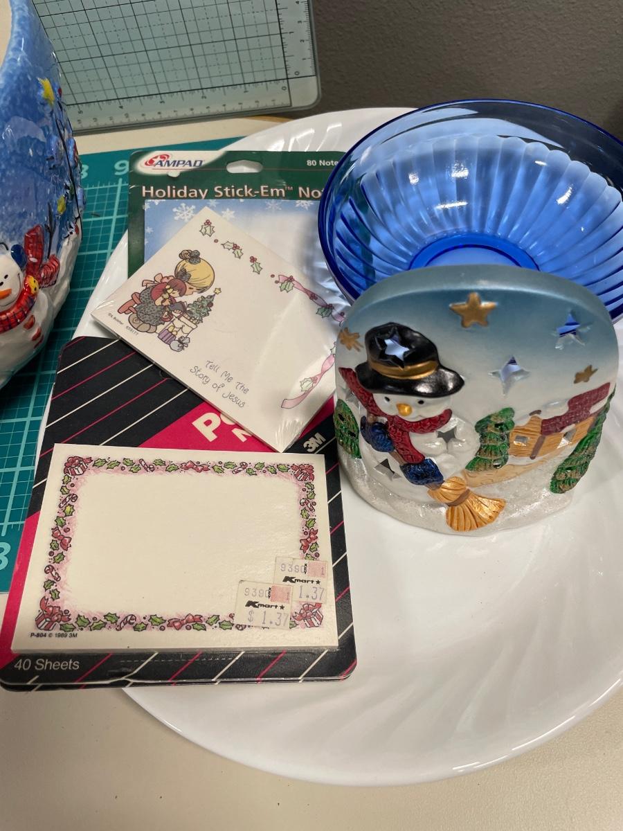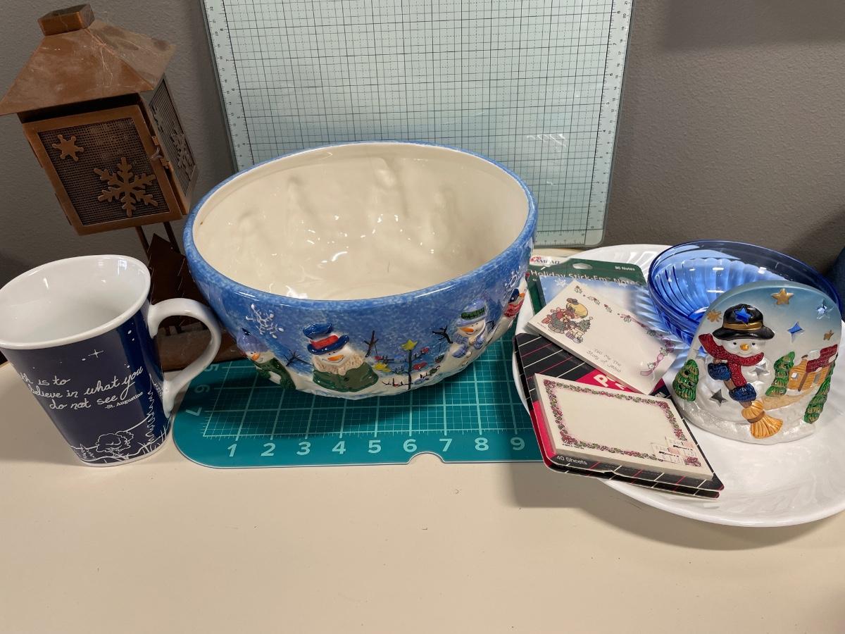 Large snowman bowl and other decor