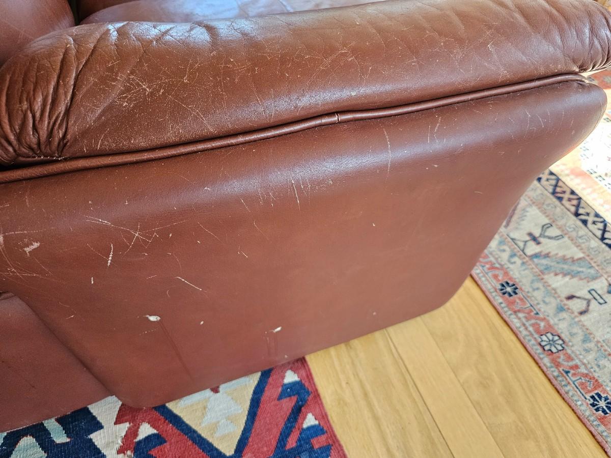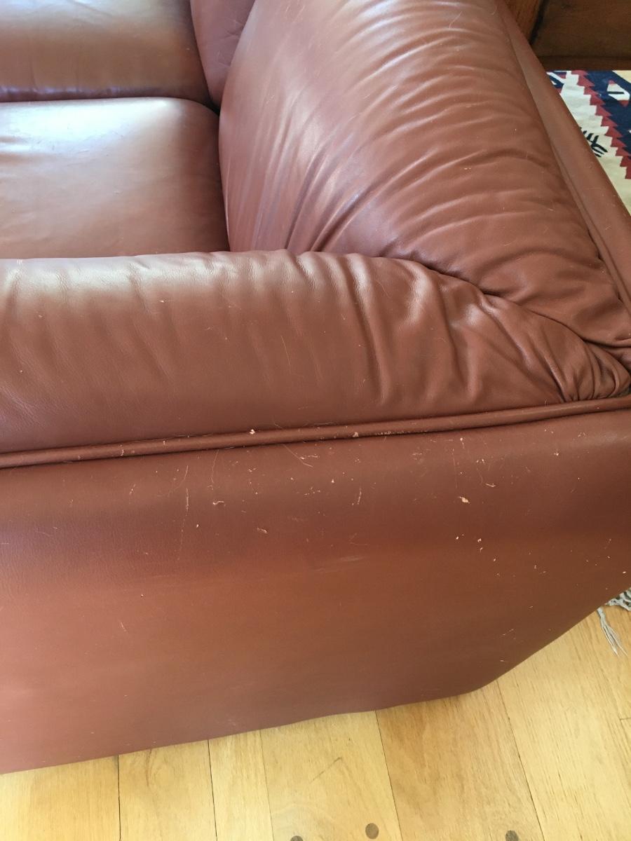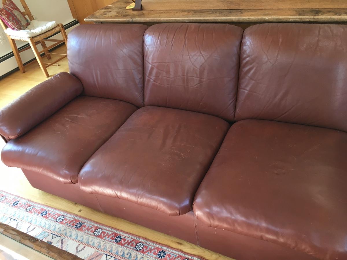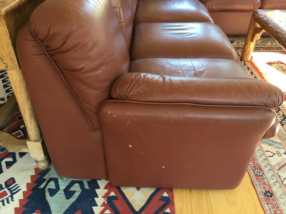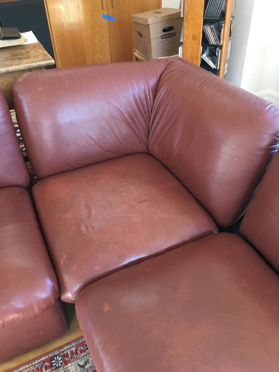 This sectional has 3 sepearte pieces. 2 longer and one corner piece. Cushion do have zippers, but larger back pieces do not. Does have signs of wear as shown in photos, but very comfortable.