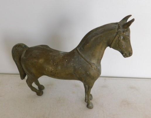 Large Solid Brass Horse 10"x10" very heavy has some patina.