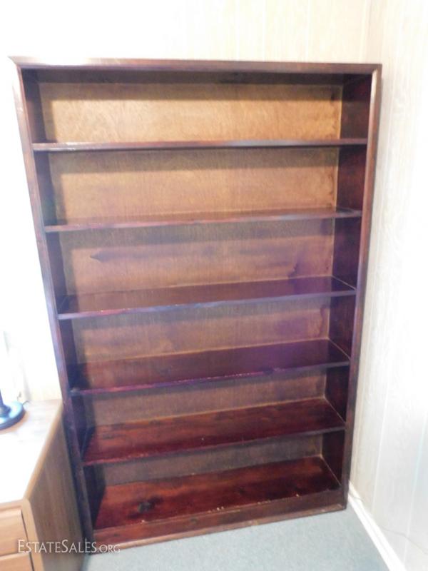 Large Solid Wood 6 Shelves Book Shelf (1 of 2). Has dark finish. Made from solid wood lumber. Good condition. Large capacity. Both are of equal condition and appearance.