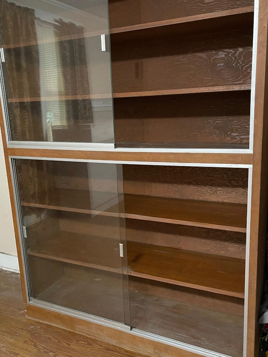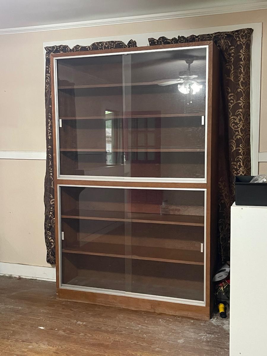Large Solid Wood Display Cabinet With Sliding Glass Doors