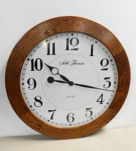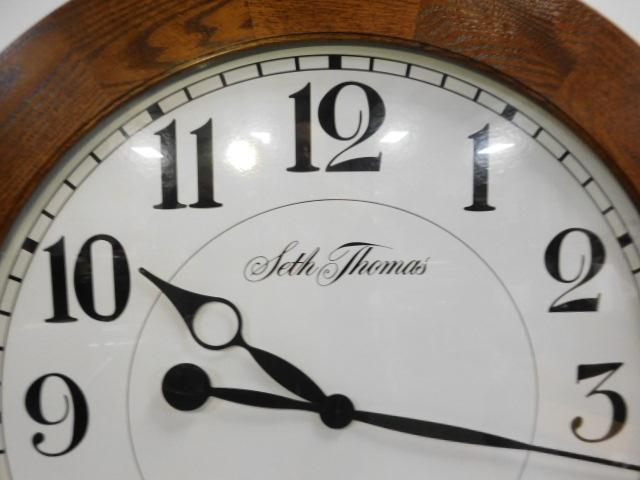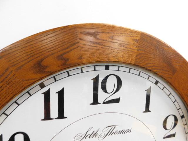 Large Solid Wood Oak Frame Seth Thomas Contemporary Wall Clock 36"
