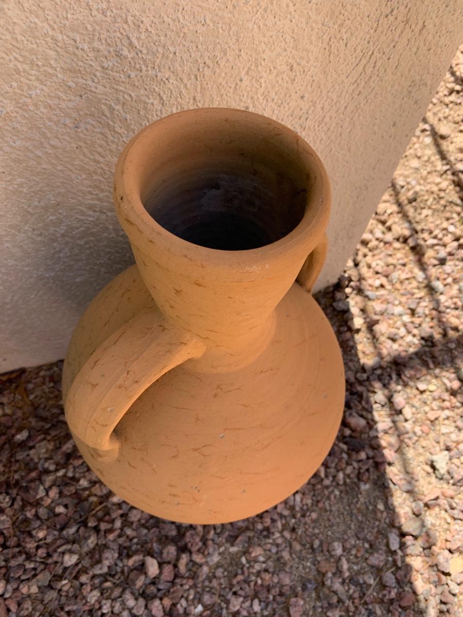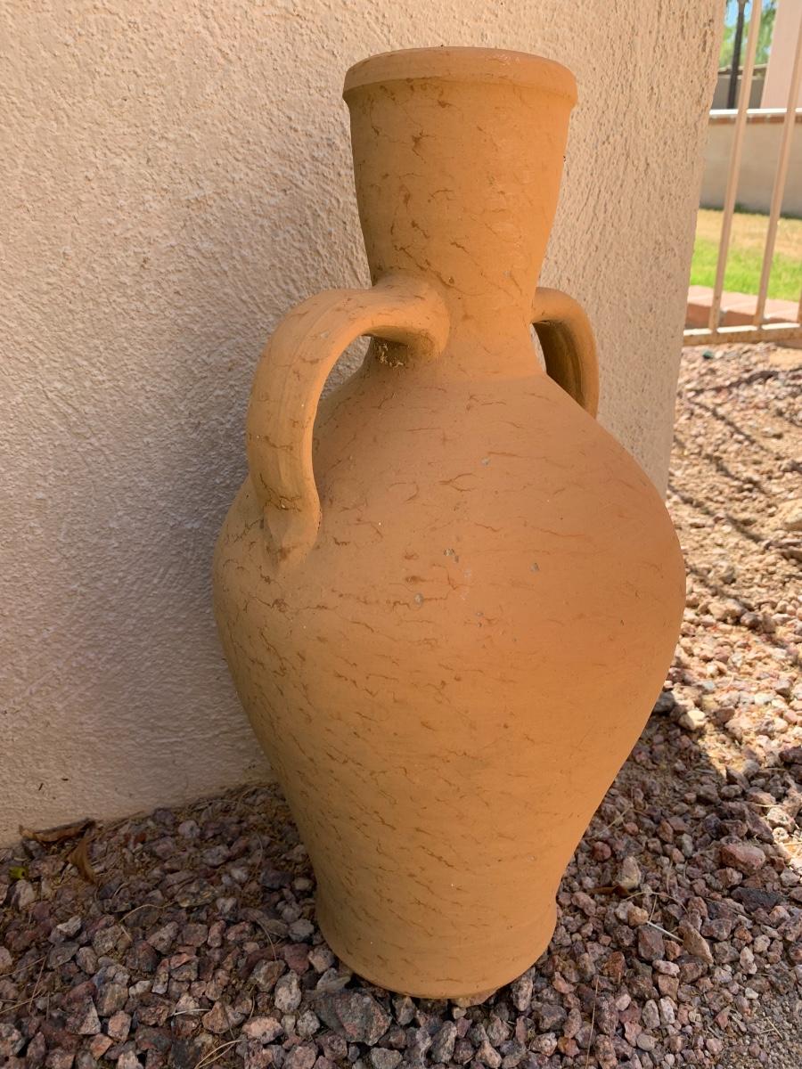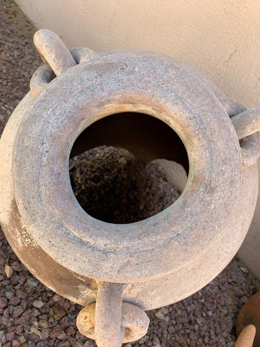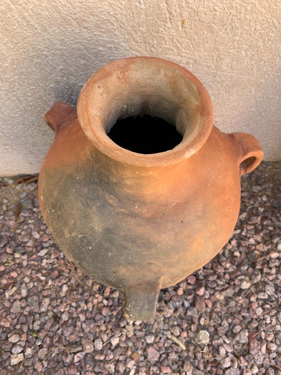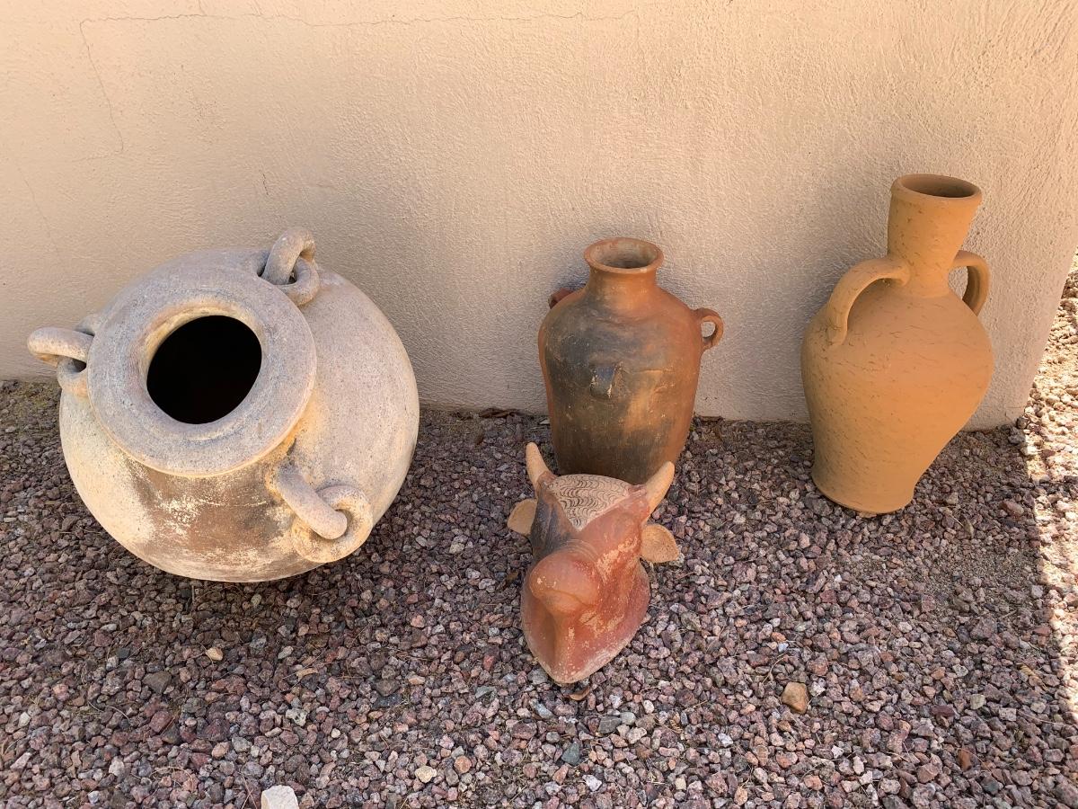 Large Southwest Outdoor Decor including 3 pots (please note the gray one is broken at the bottom) the other pots are fine and in excellent condition. Cows head in great condition, minor wear.