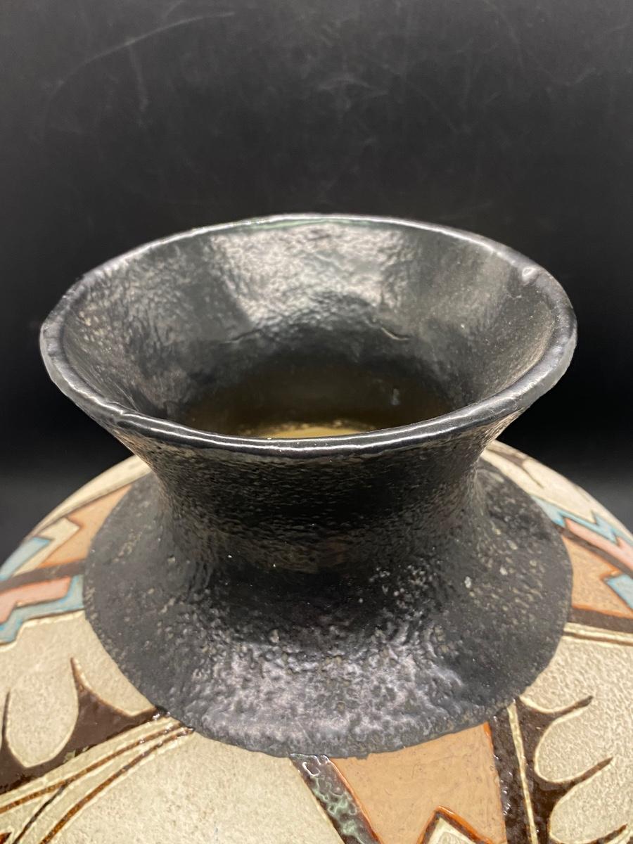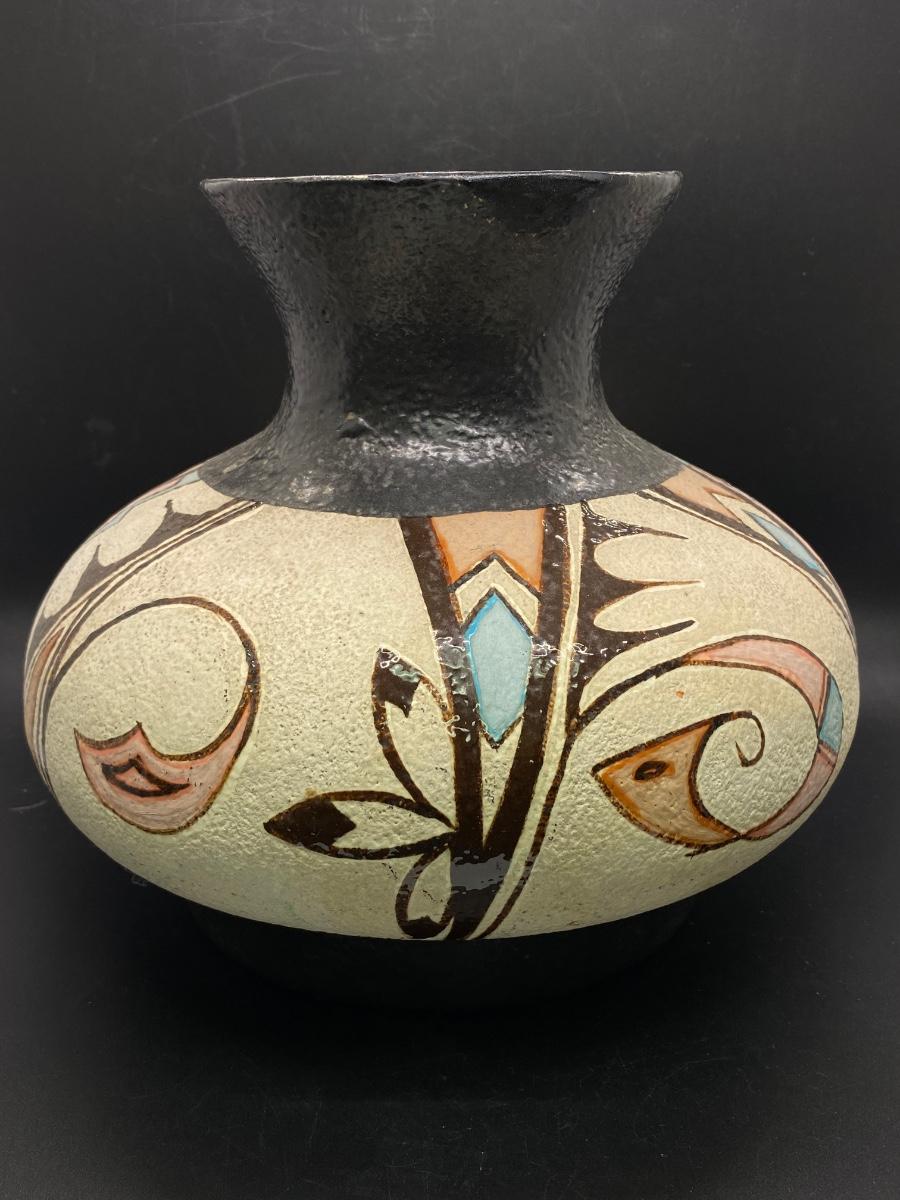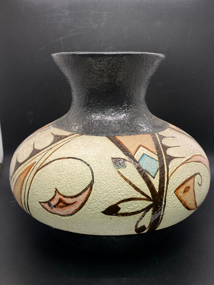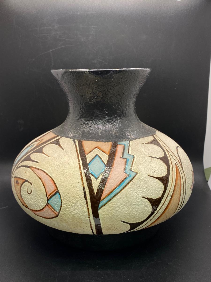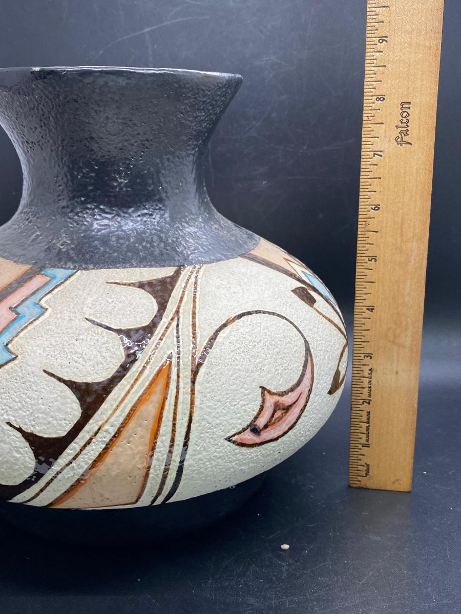 Large Southwestern Design Textured Painted Vase Vessel
