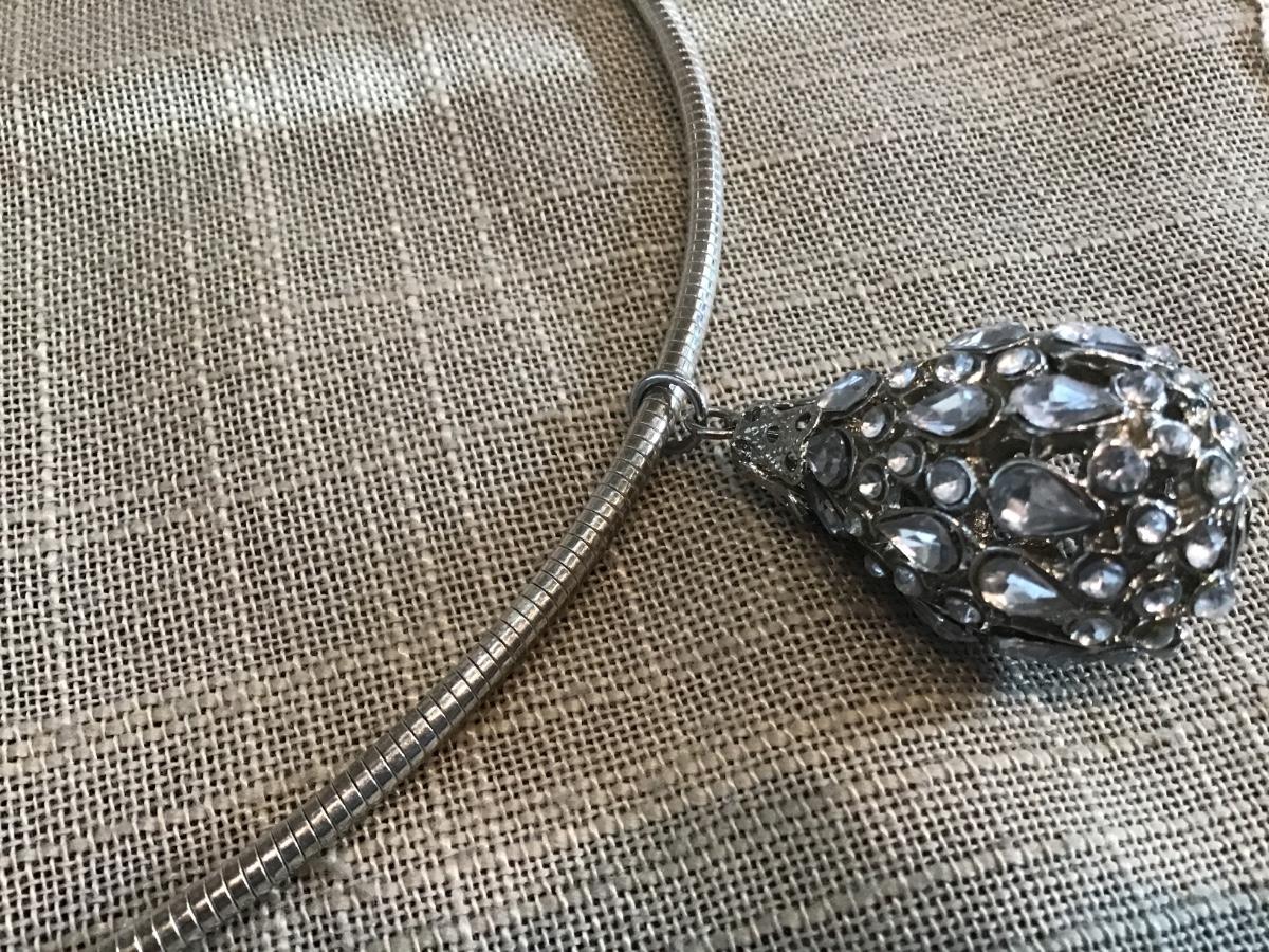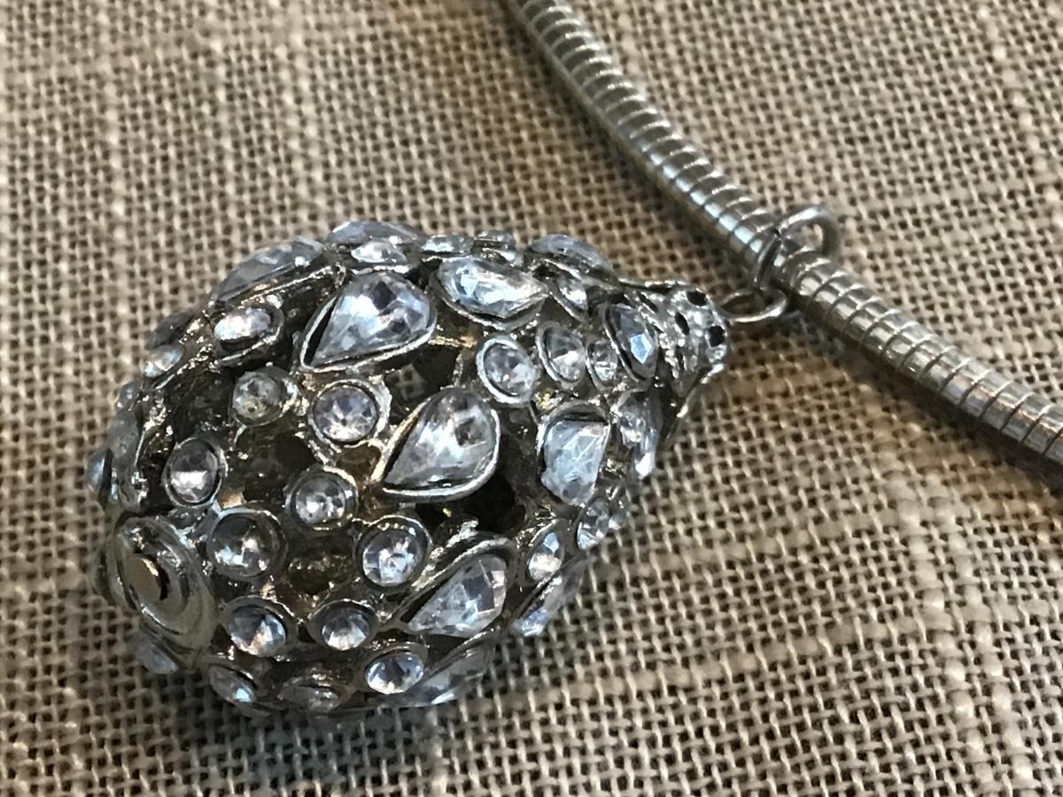 Large Sparkling Pendant Silver Tone Locking Braided Type Necklace