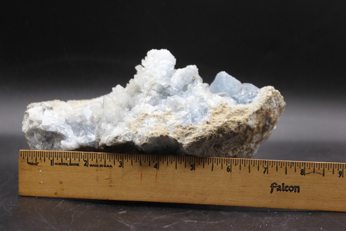 Large piece of crystal mineral rock. Looks like it may be an aquamarine variant or Celestite. Beautiful crystal with a blue hue. About 7" length. Delicate, pieces can break off easily.