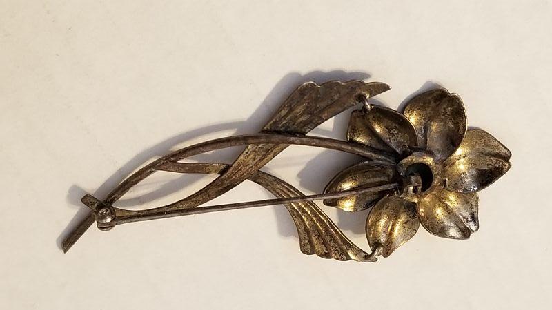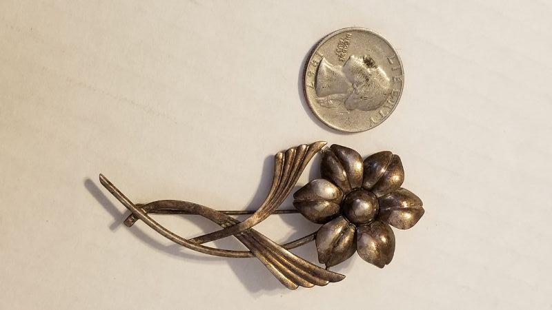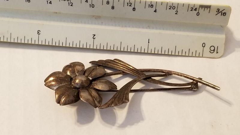 Large marked sterling (see last two photos, it looks like it may have a makers mark as well which I can barley make out), flower brooch pin.