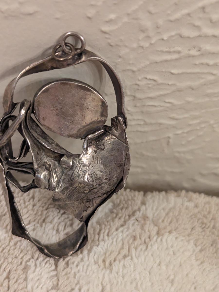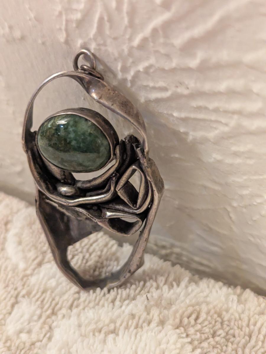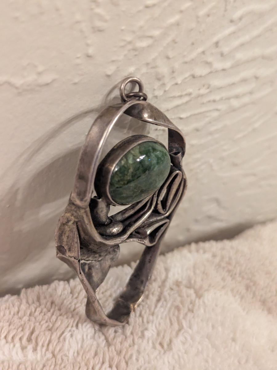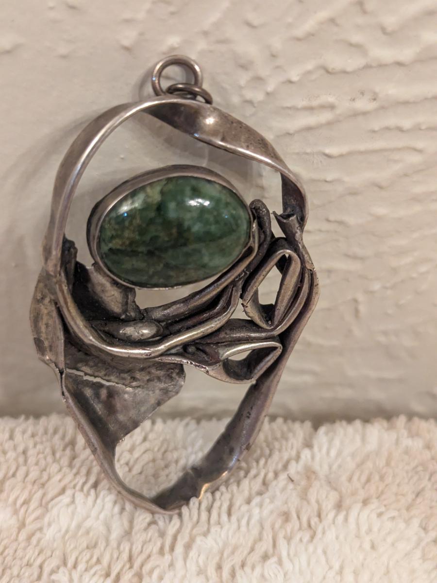 Large sterling silver pendant with gree turquoise stone- looks to be home made