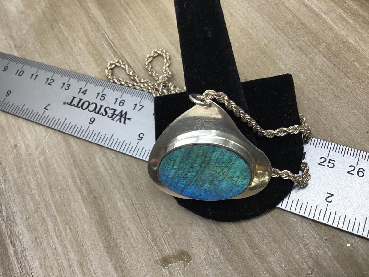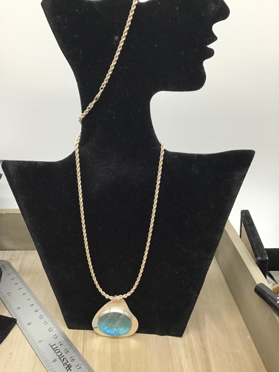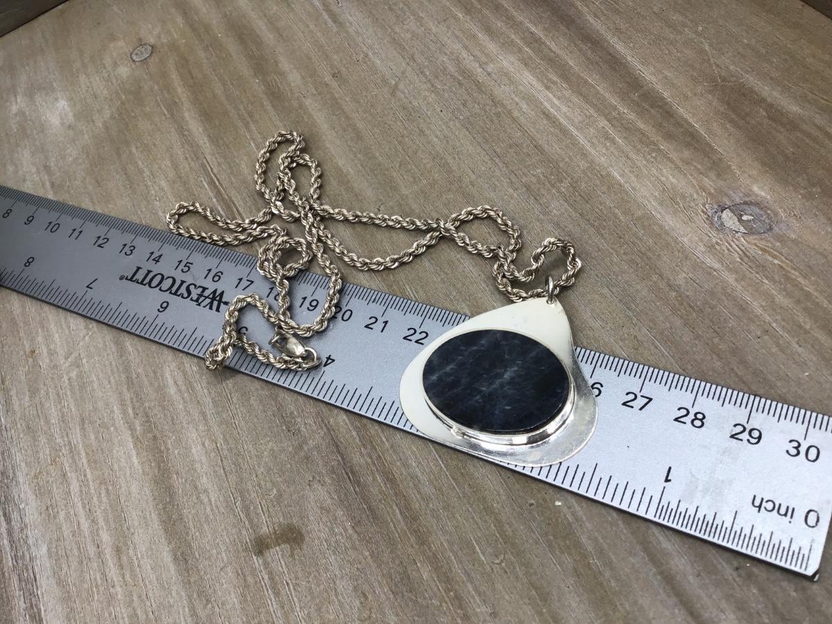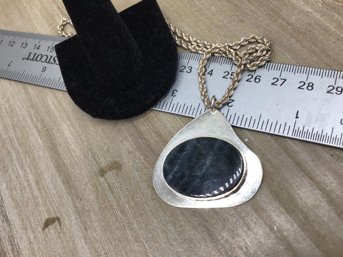 Large Sterling Silver Stone Pendant With Heavy Silver 925 Chain