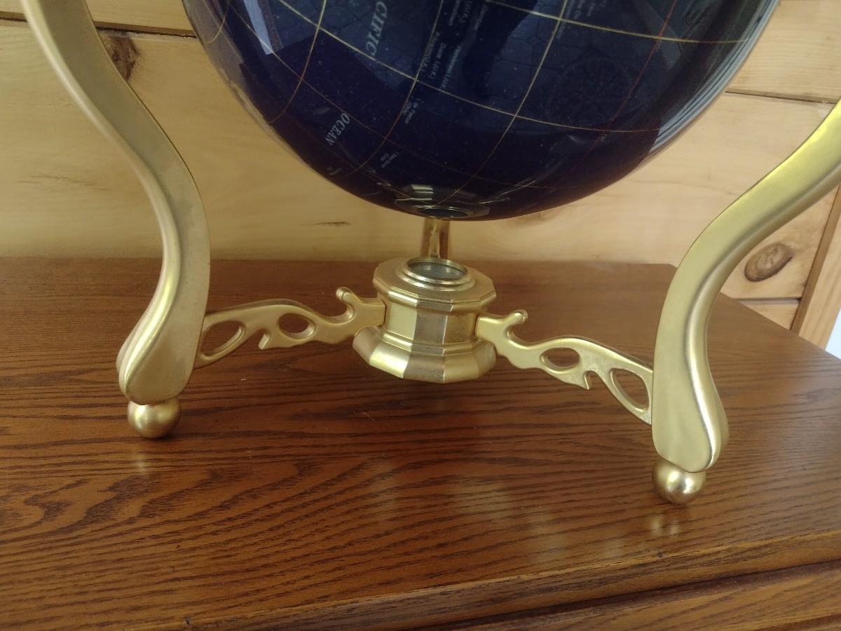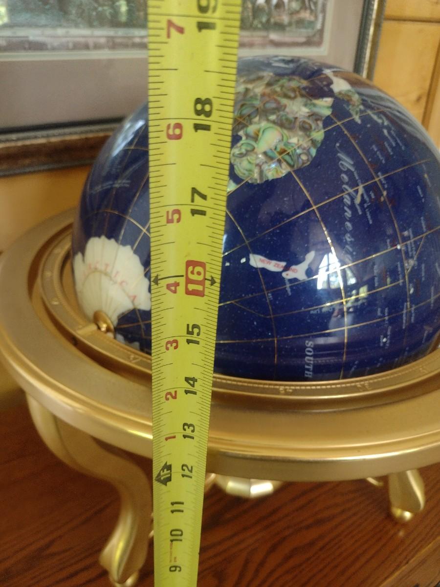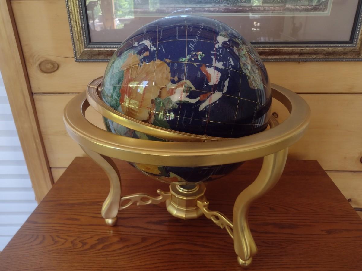 Large Stone World Globe with Mother of Pearl Inlay in Metal Frame
