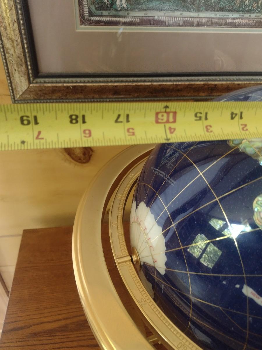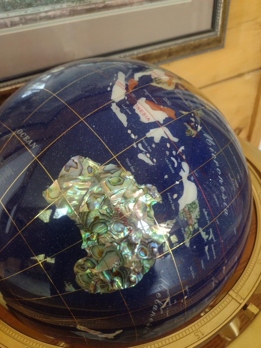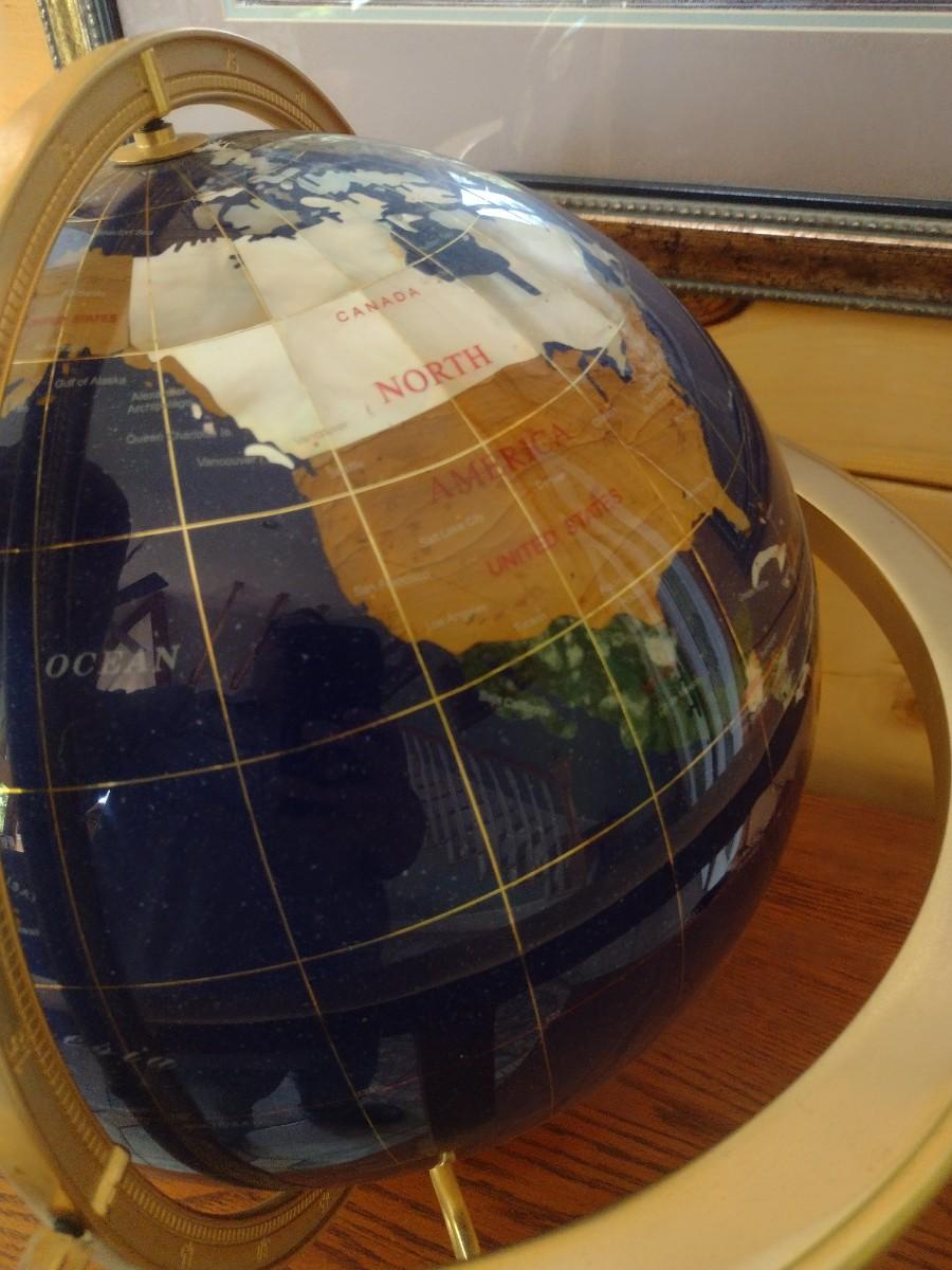 Large Stone World Globe with Mother of Pearl Inlay in Metal Frame