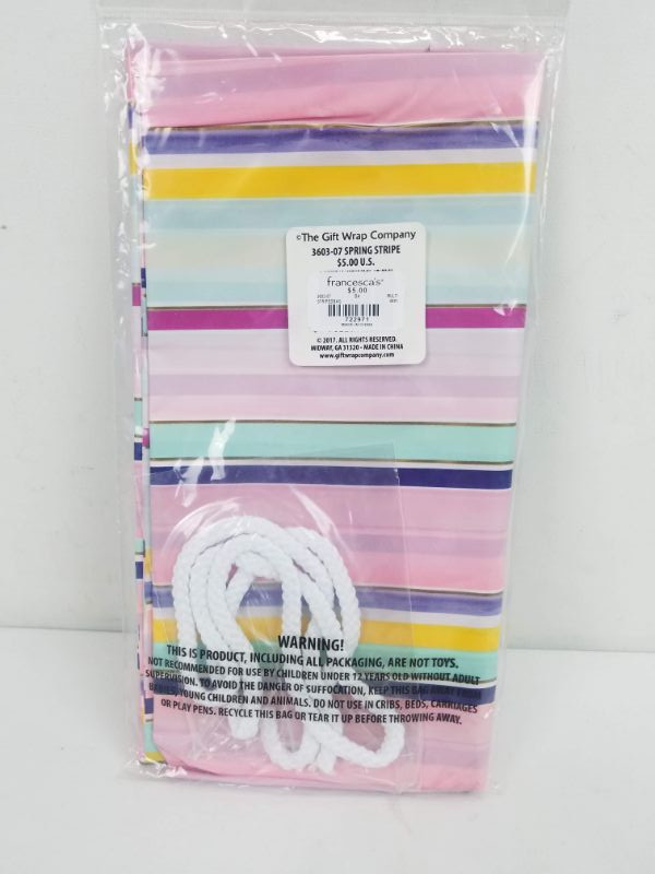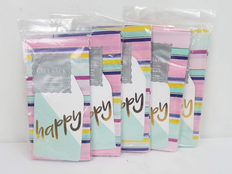 Large Striped Gift Sacks, Qty 5. Includes "Happy" Tag and Tie. Bags are 36"x44" - New