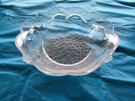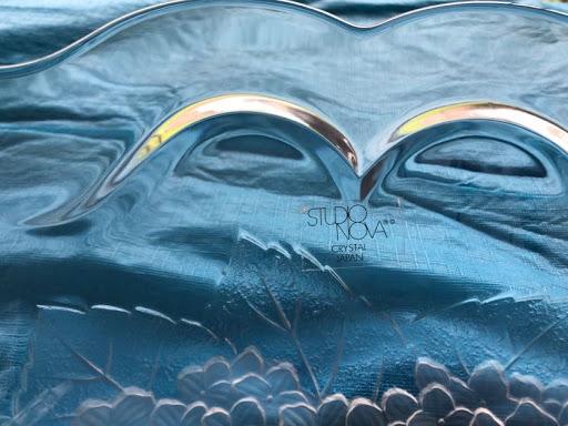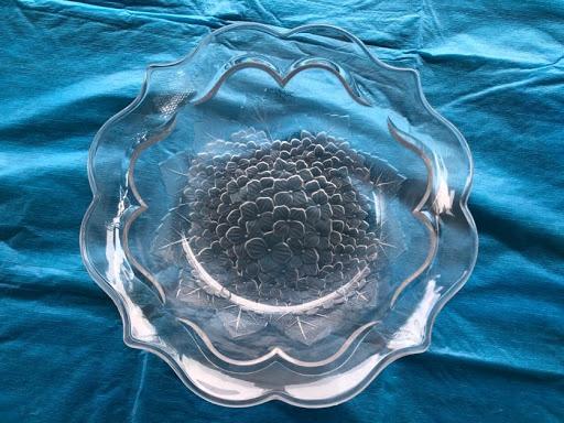 Large Studio Nova Crystal Fruit Bowl. Floral bottom, scalloped edge.
