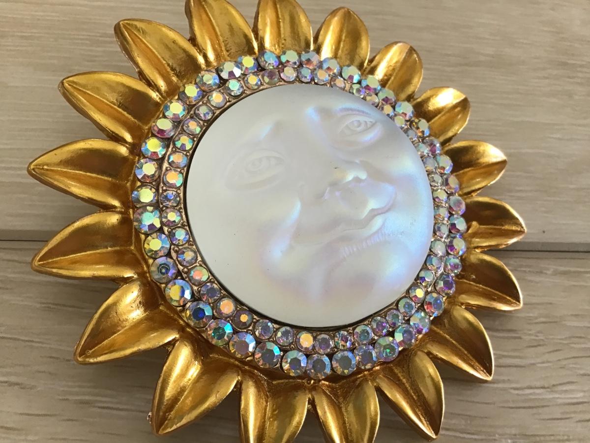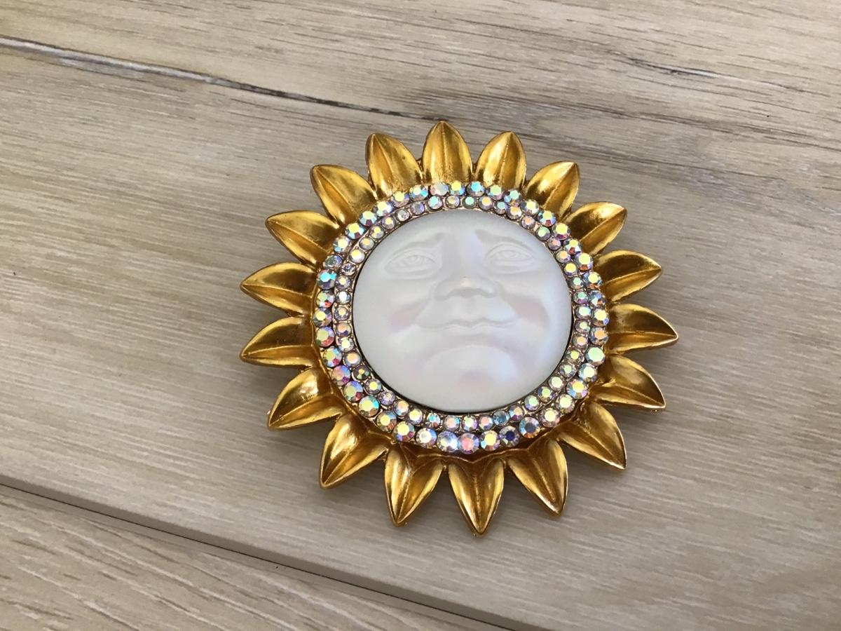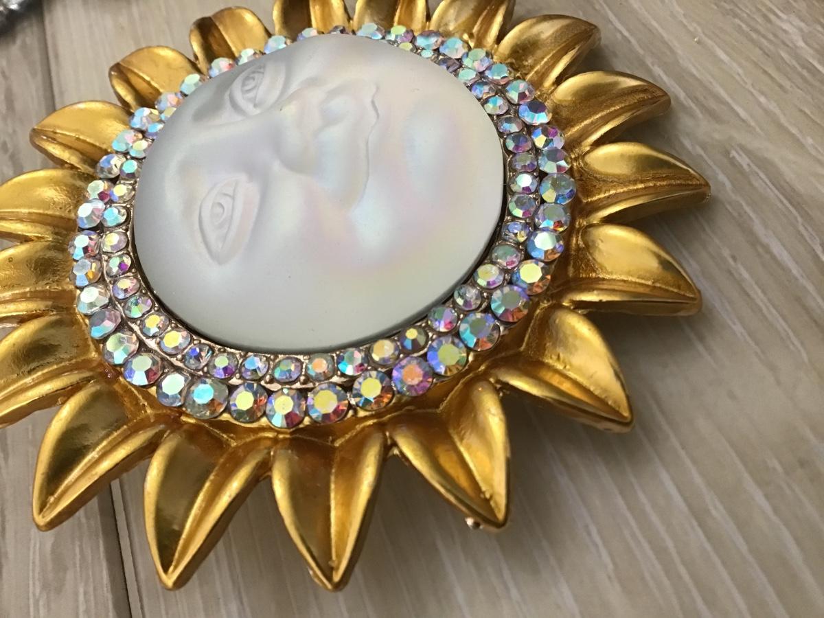 Large Sun Moon Brooch Iradescent Or Pendant Fashion