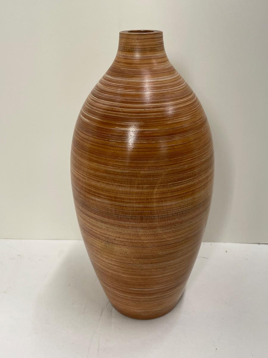 Crate & Barrel Turned Wood Vase Vessel Boho Rustic