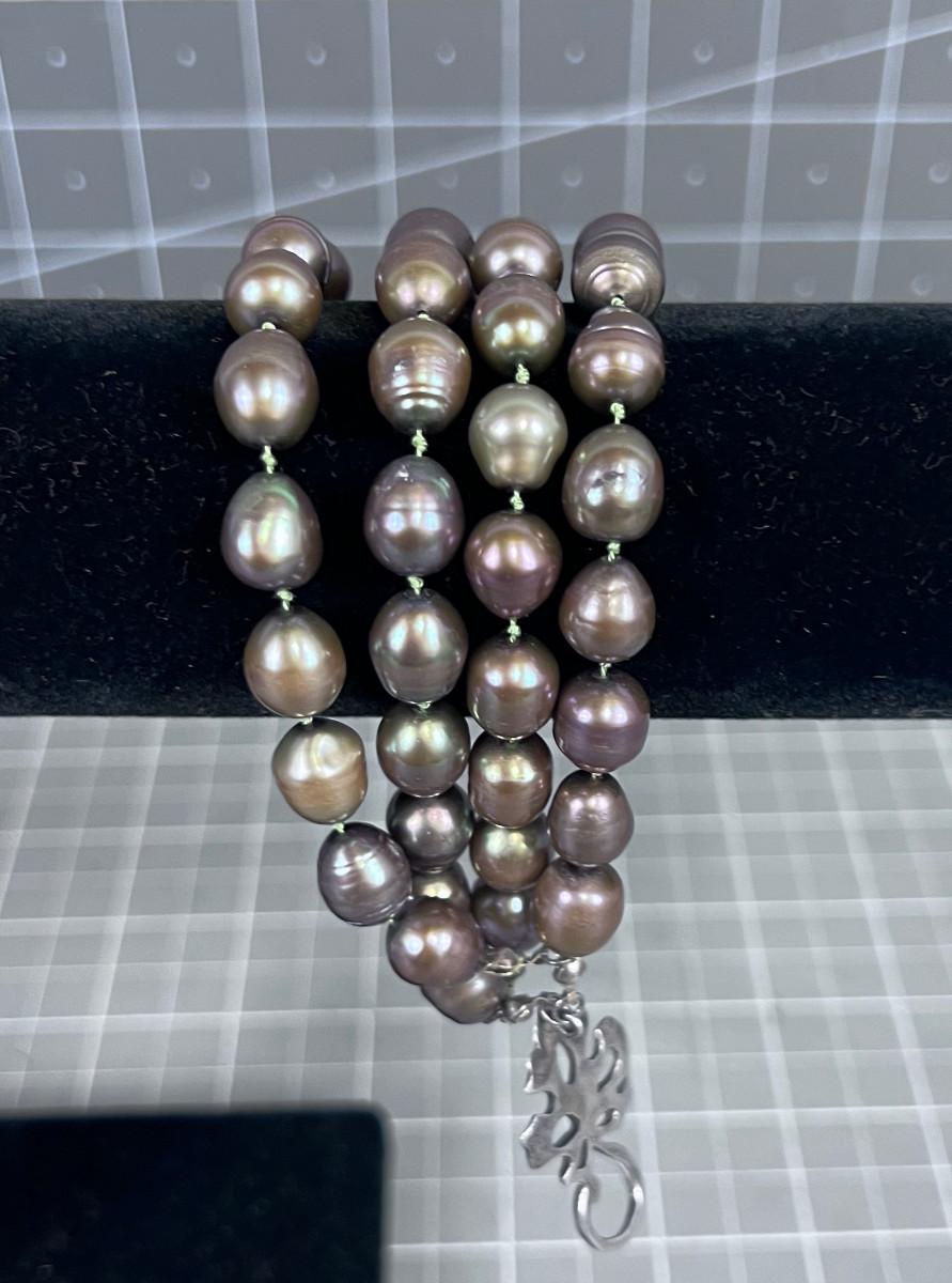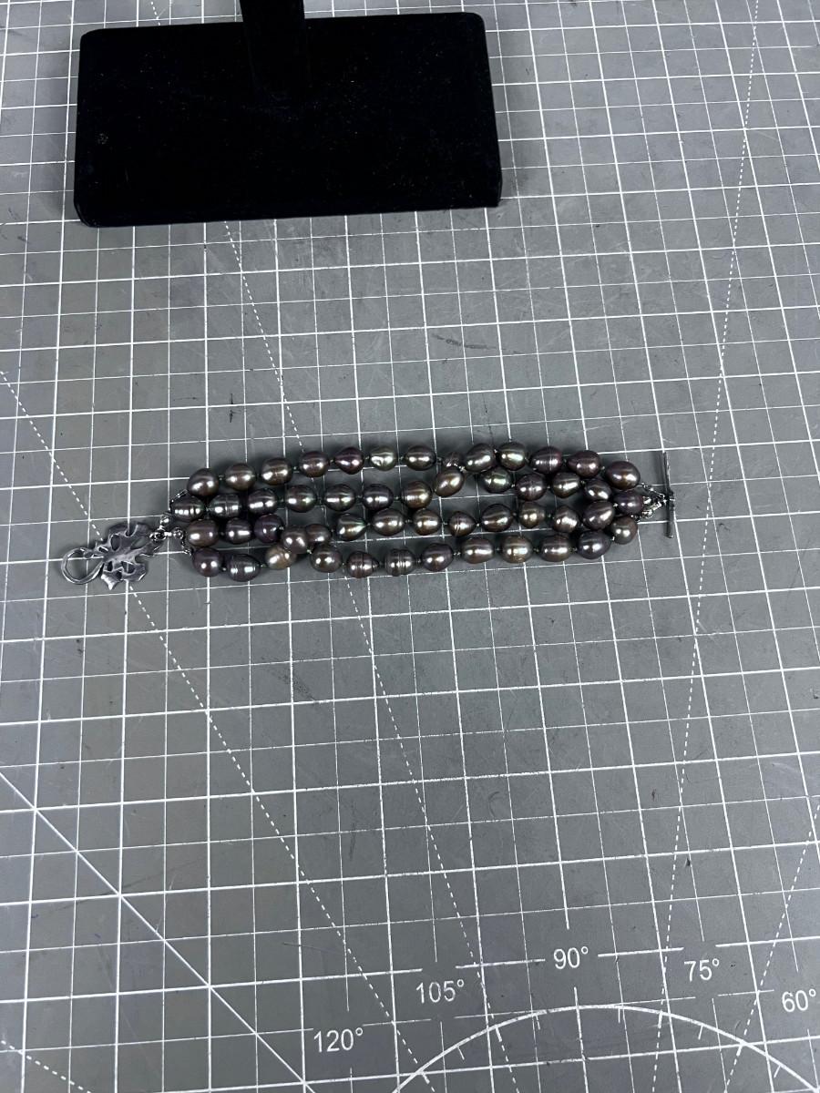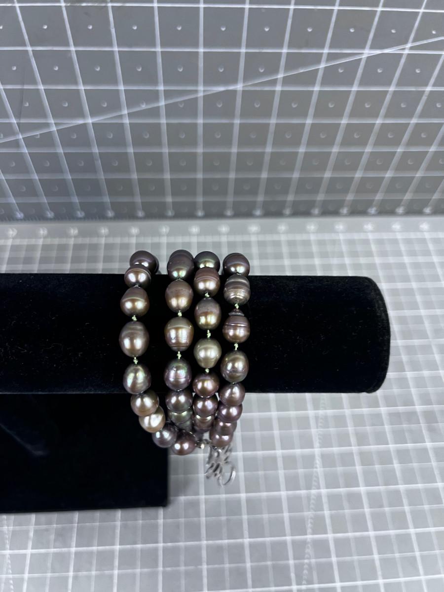 Large Taupe Pearled Bracelet NICE!