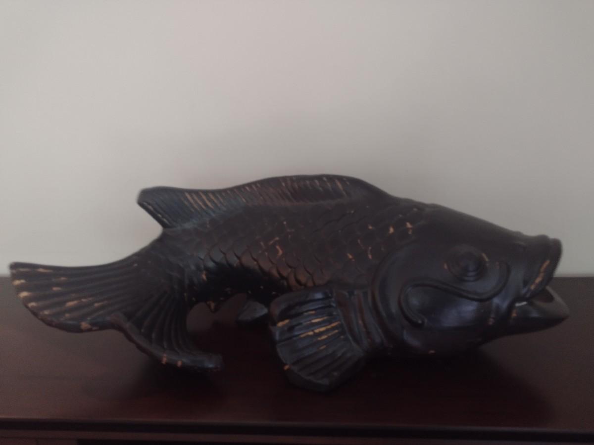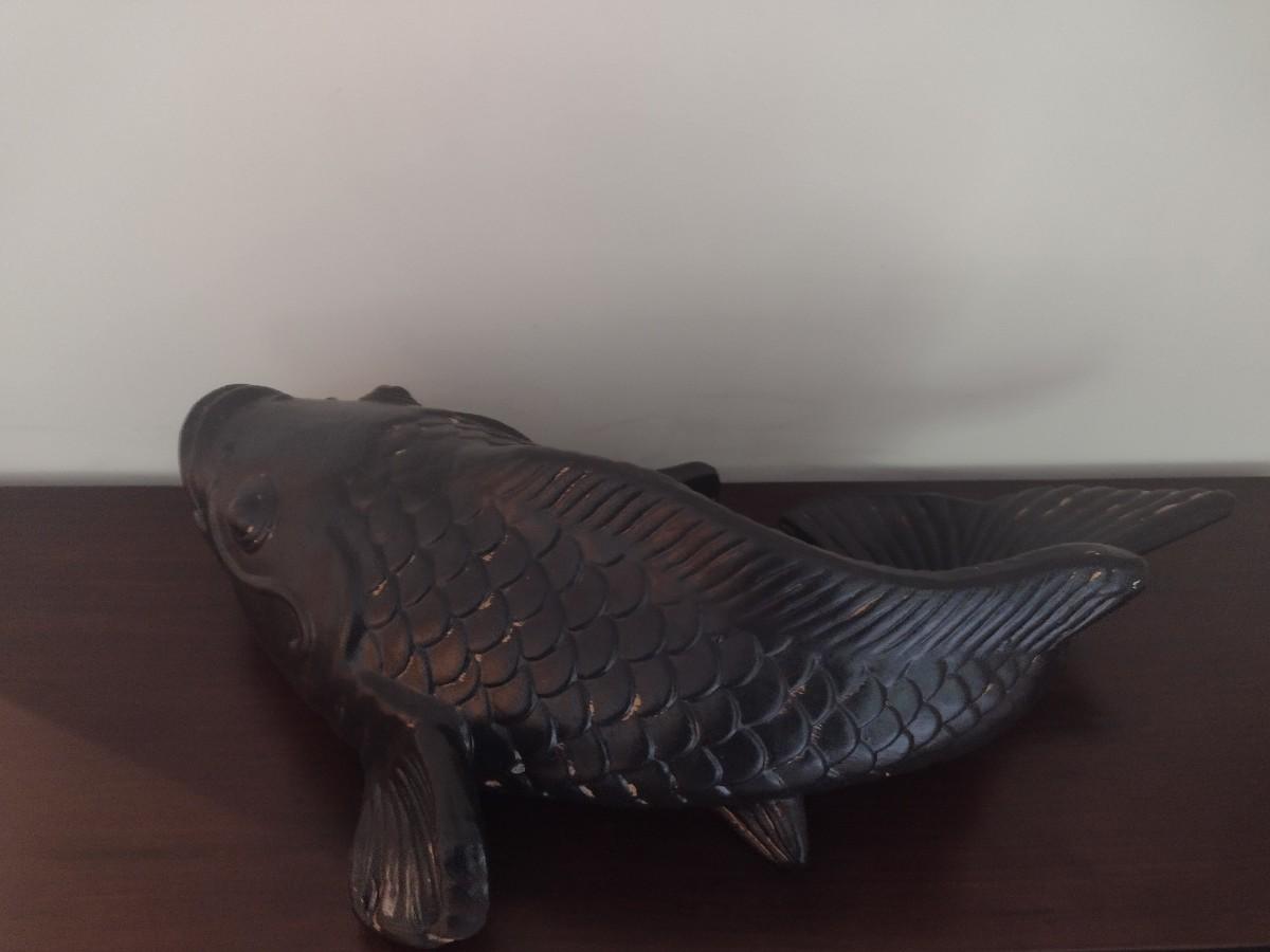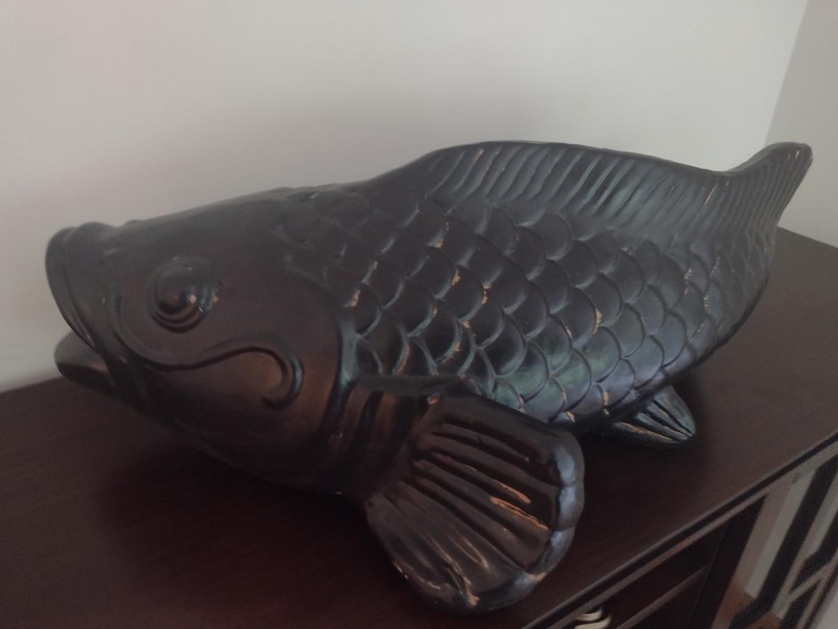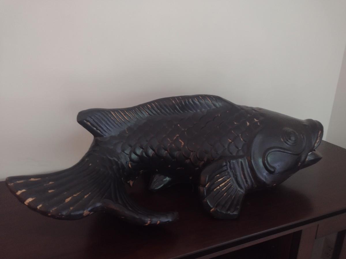 Large Terracotta Clay Painted Koi Fish 32"