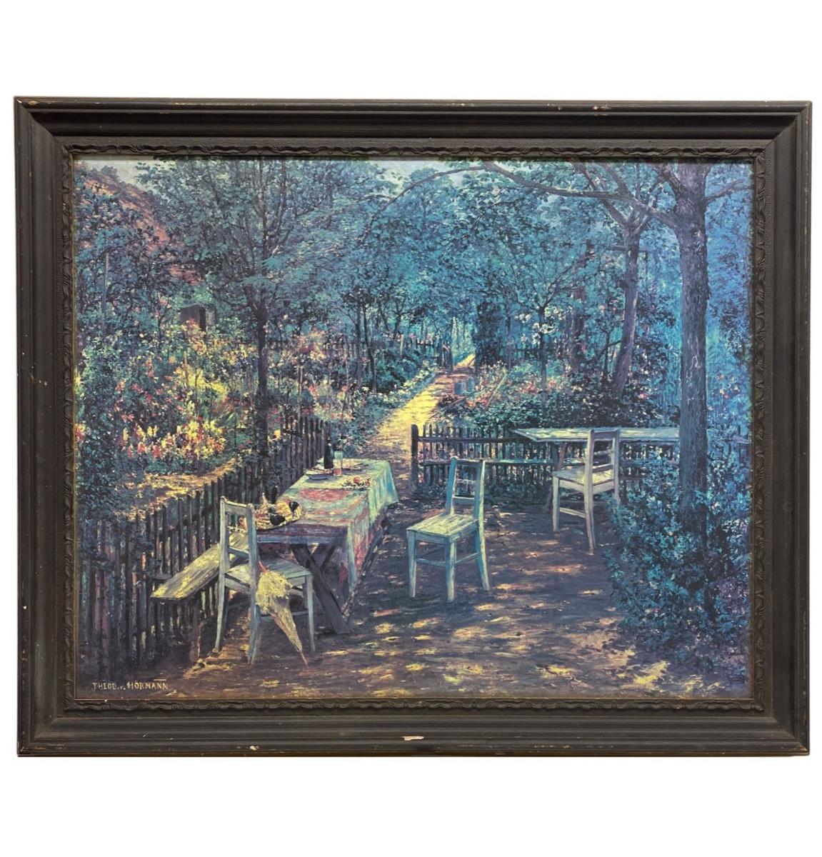 Large Theodor von Hermann Giclee 'Summer in Garden'. Framed approx. 28.5 x 34.75 in.