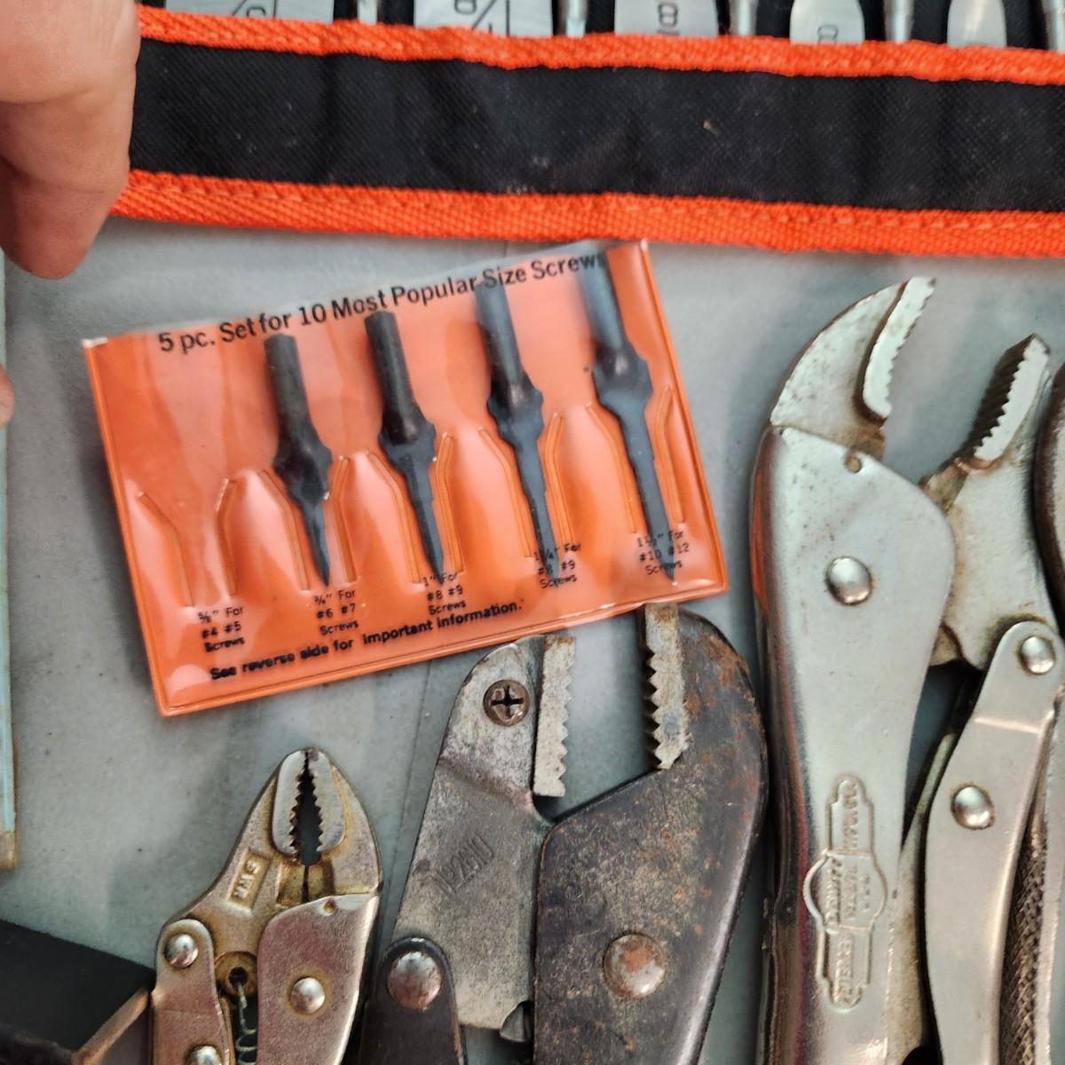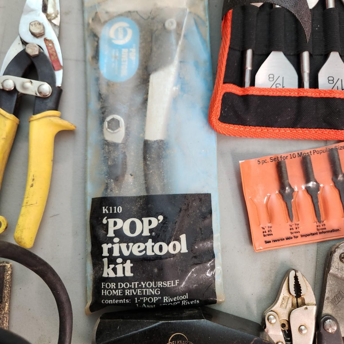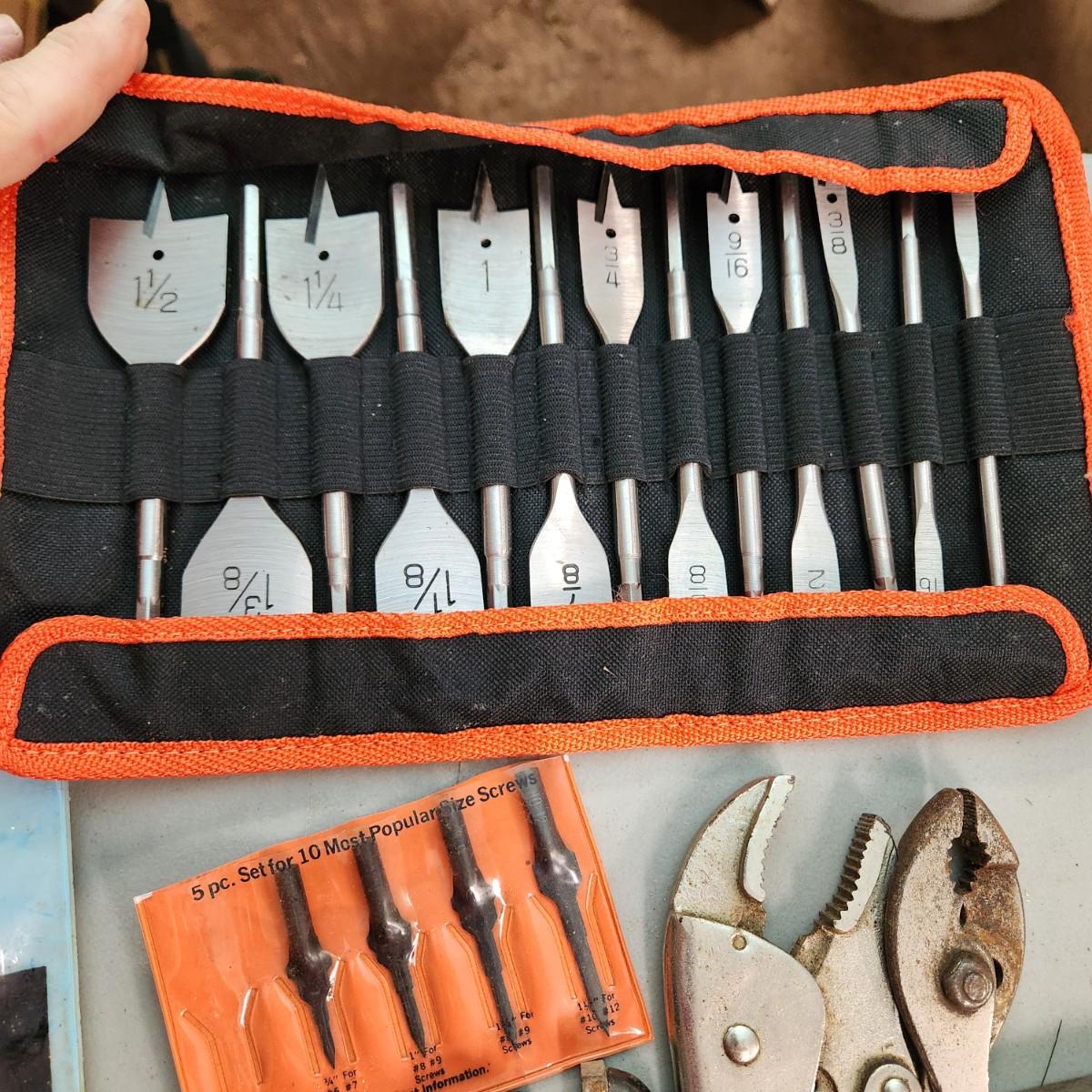 Large Tool lot Vise Grips Hammers, Sander, Hanson Drill Bits, Belknap , Stanley Plane