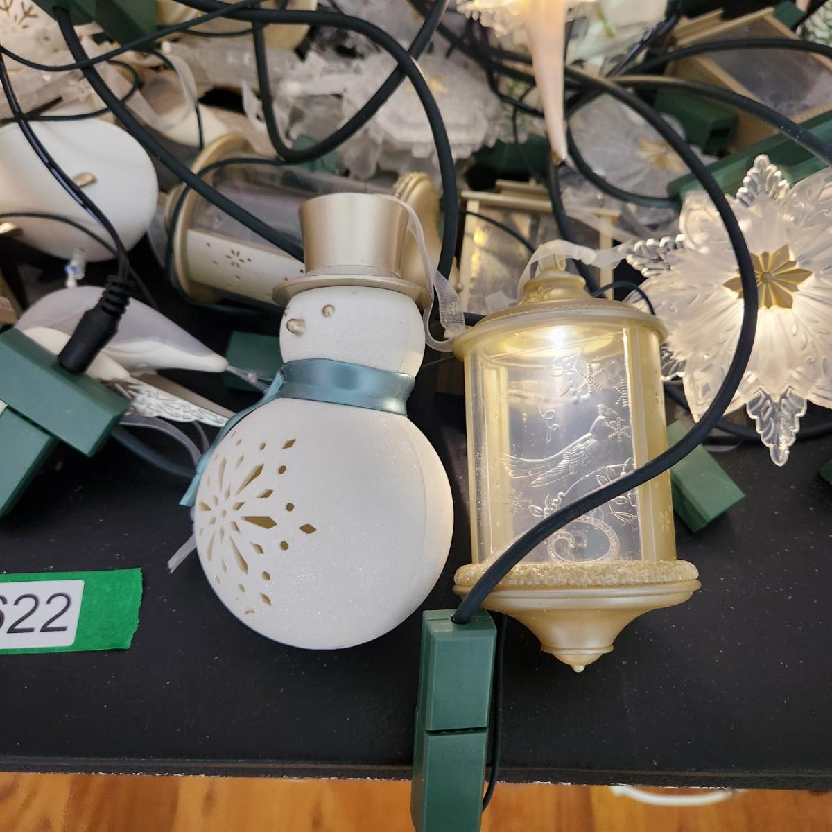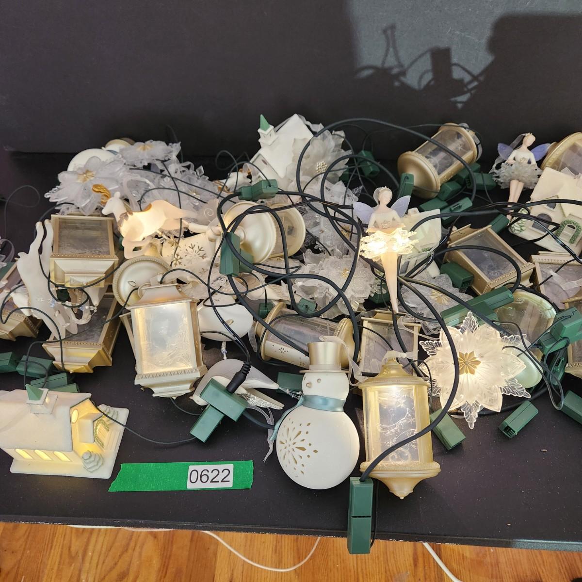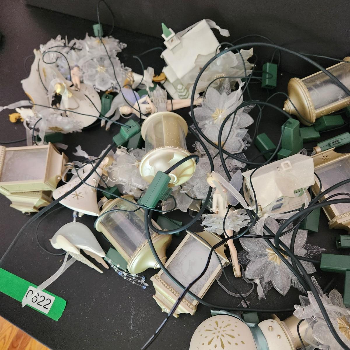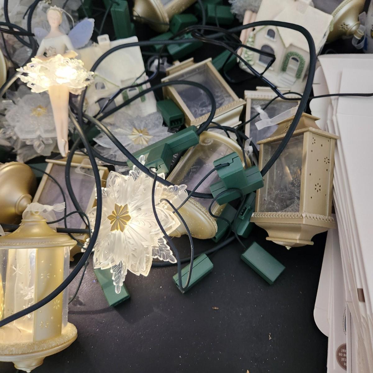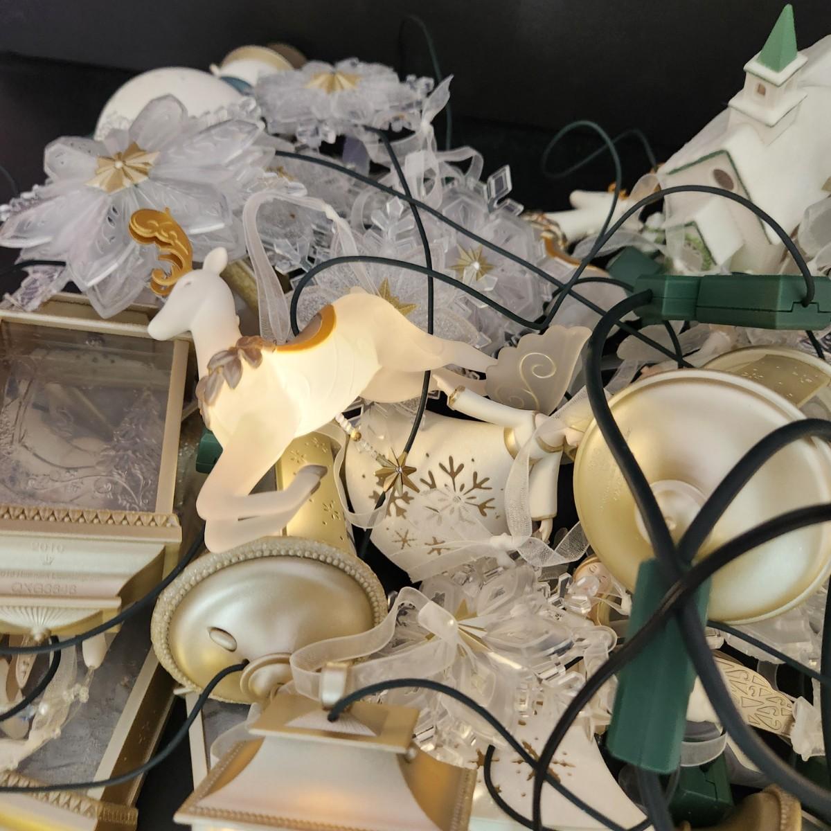 Large Tote Filled w Hallmark Wonder & Light Ornaments with Cords Fairy, Snowflake, Reindeer, Home,Church