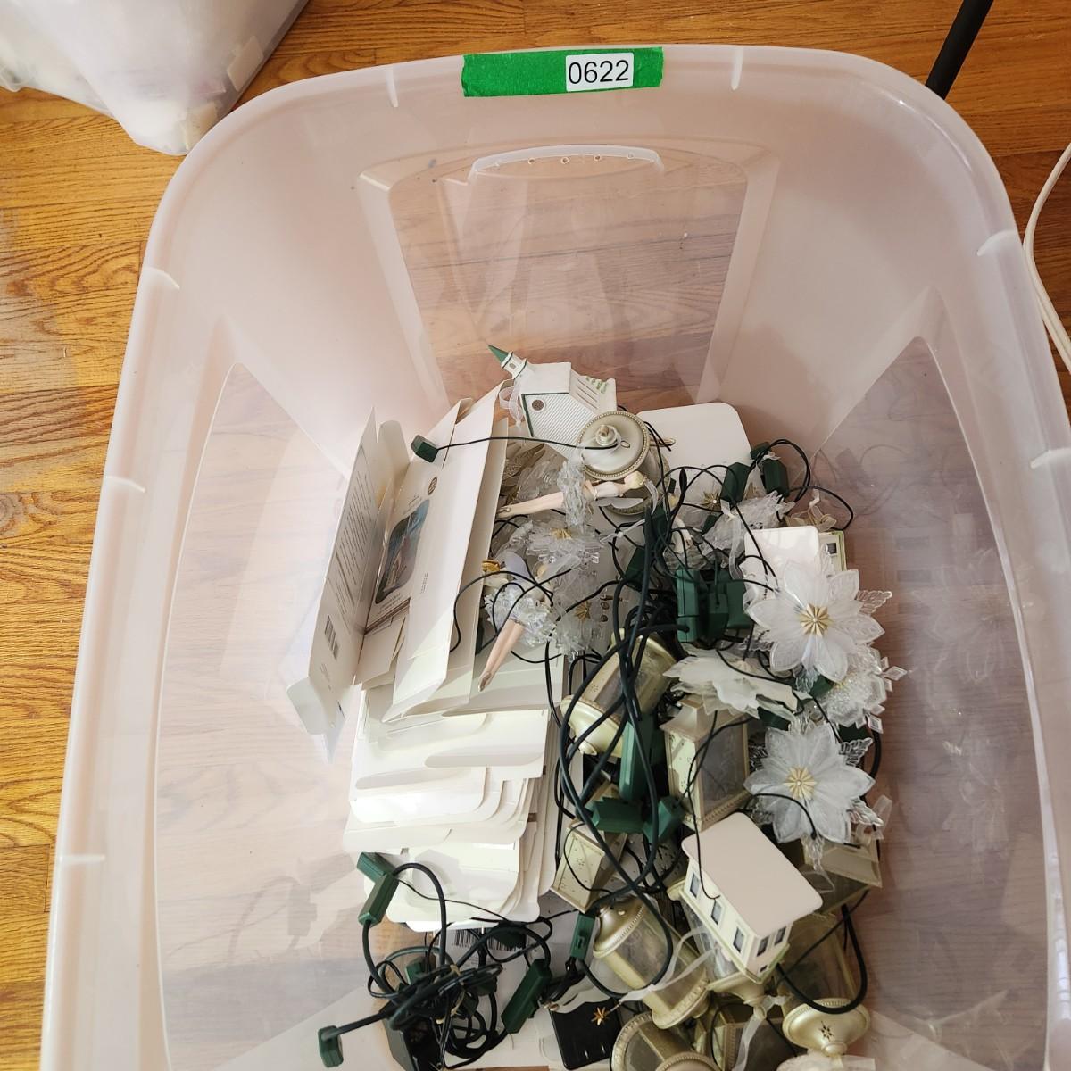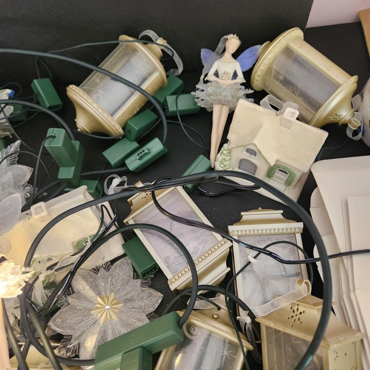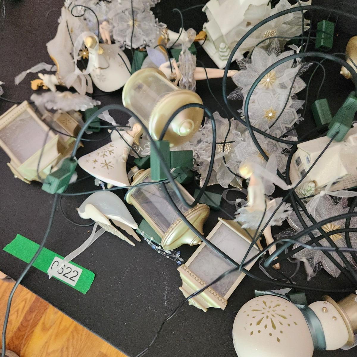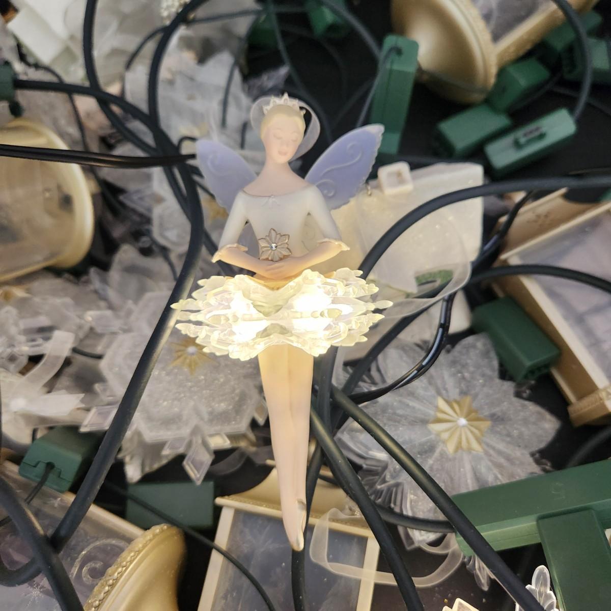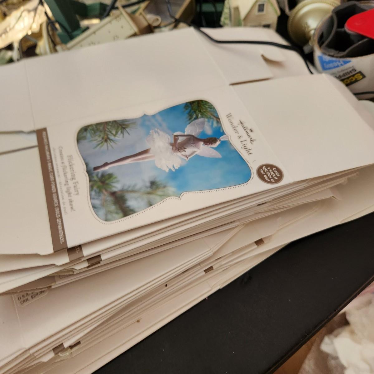 Large Tote Filled w Hallmark Wonder & Light Ornaments with Cords Fairy, Snowflake, Reindeer, Home,Church