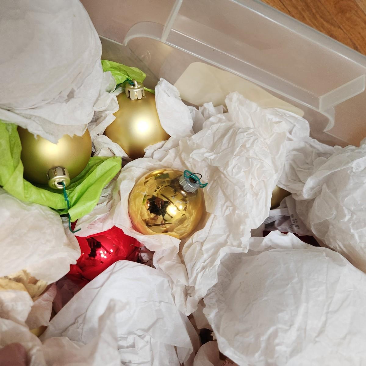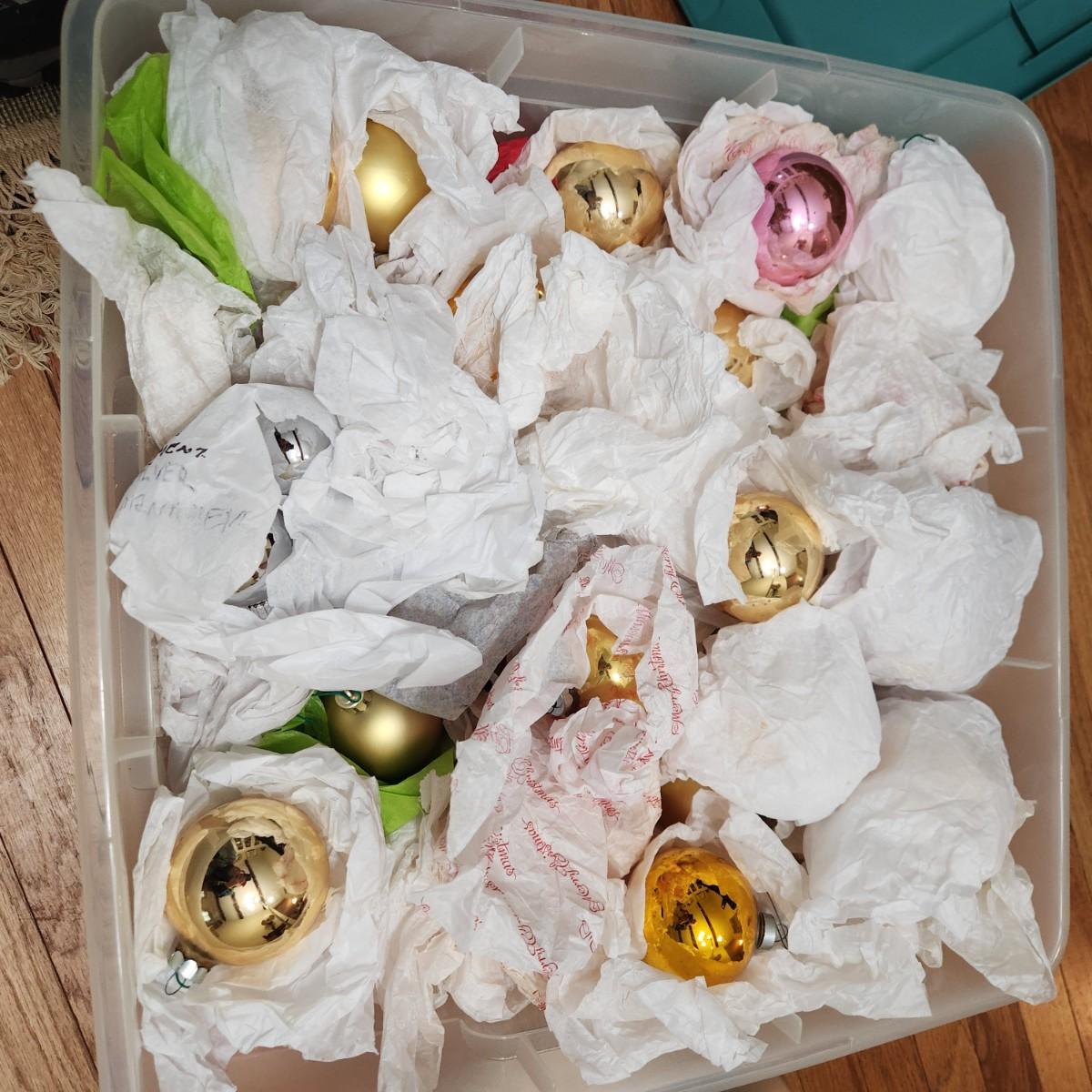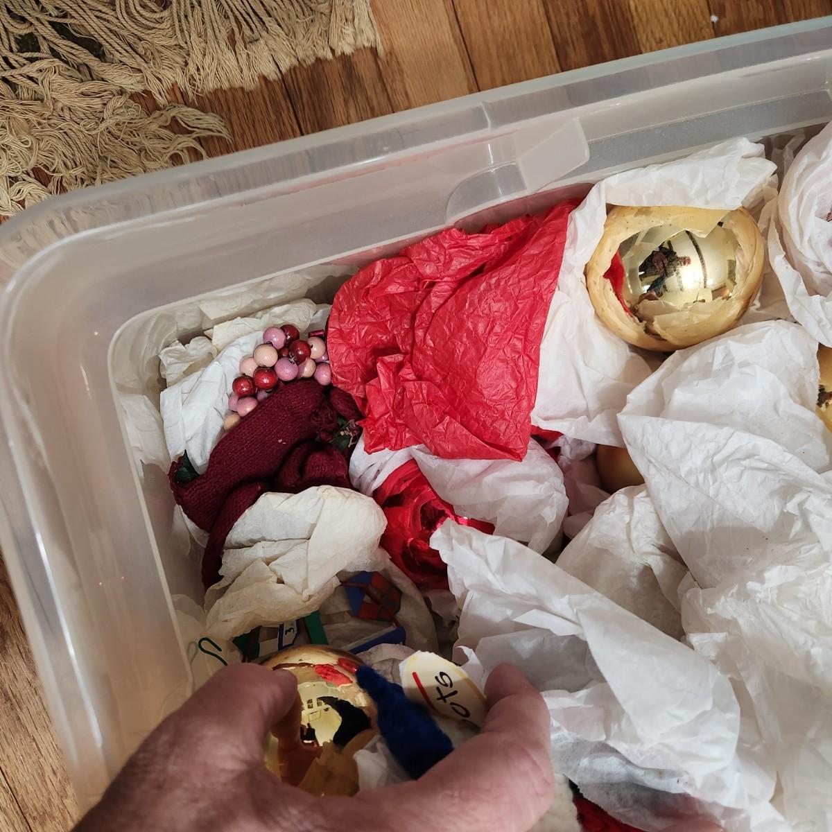 Large Tote Full of Christmas ornaments Rauch Industry  Lot 571