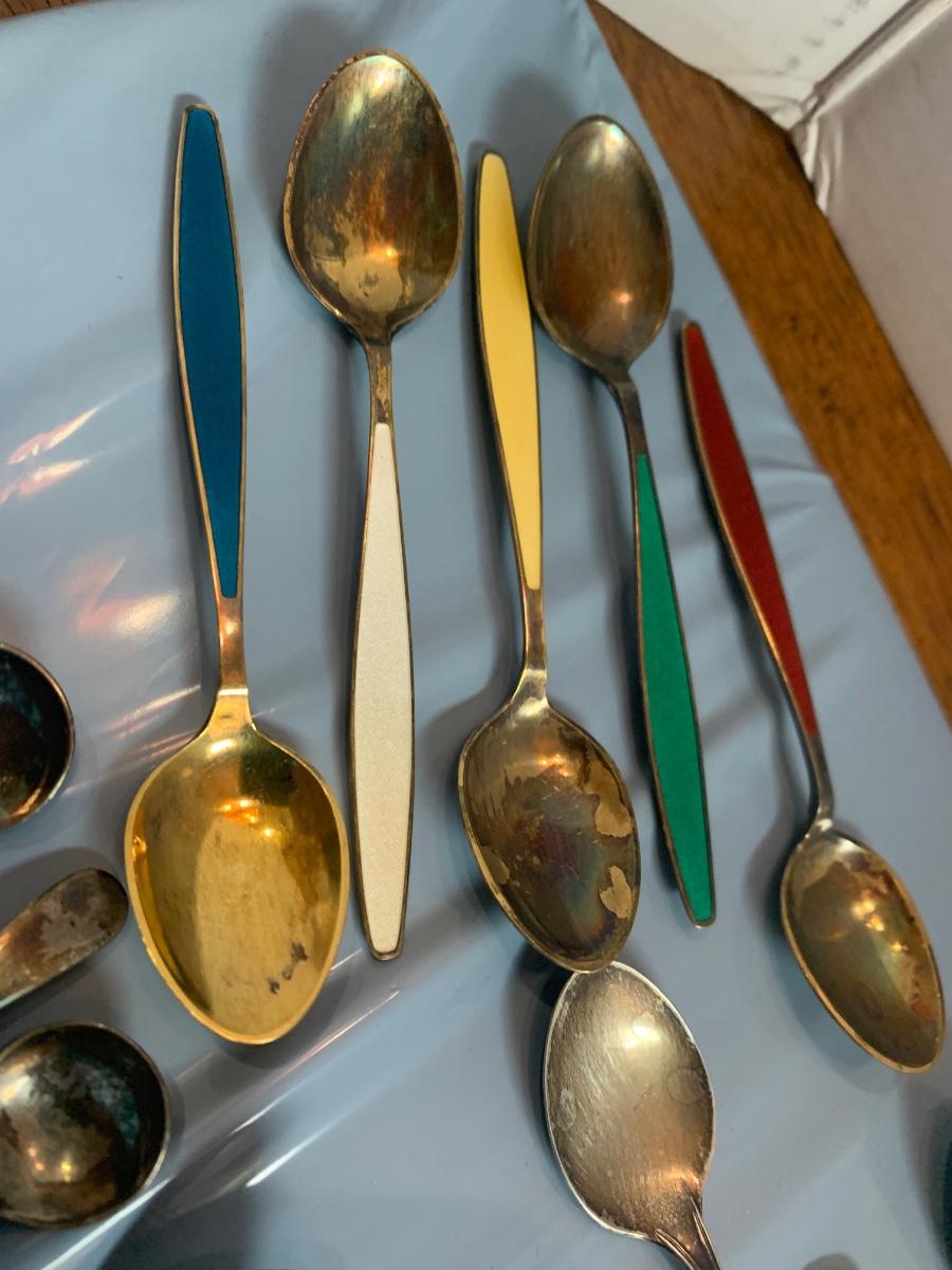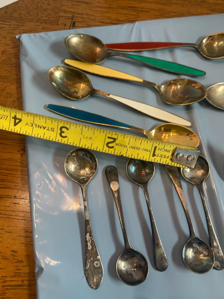 All are sterling. Some are sets as shown in pics including a MCM Norwegian colored handled set. Make sure to look at all pictures for details. 366 grams total weight