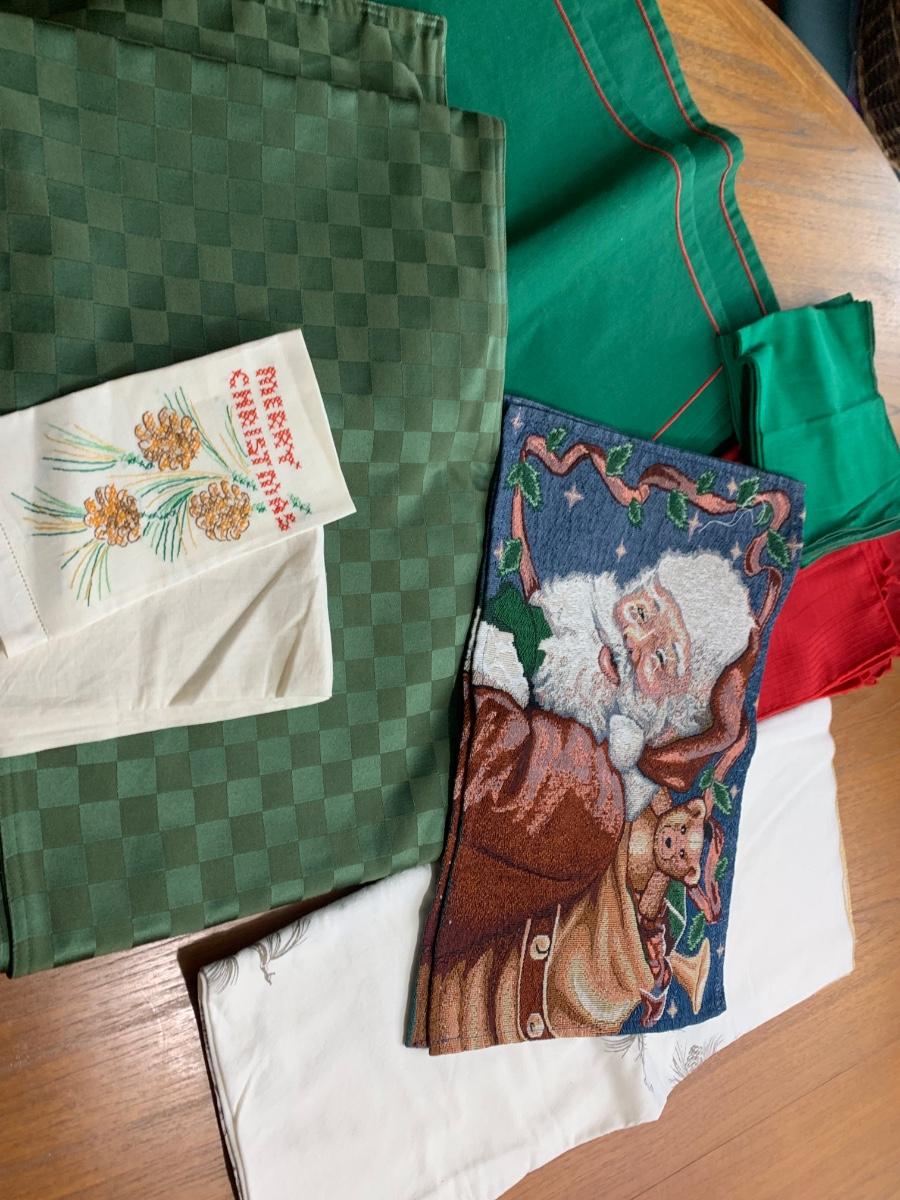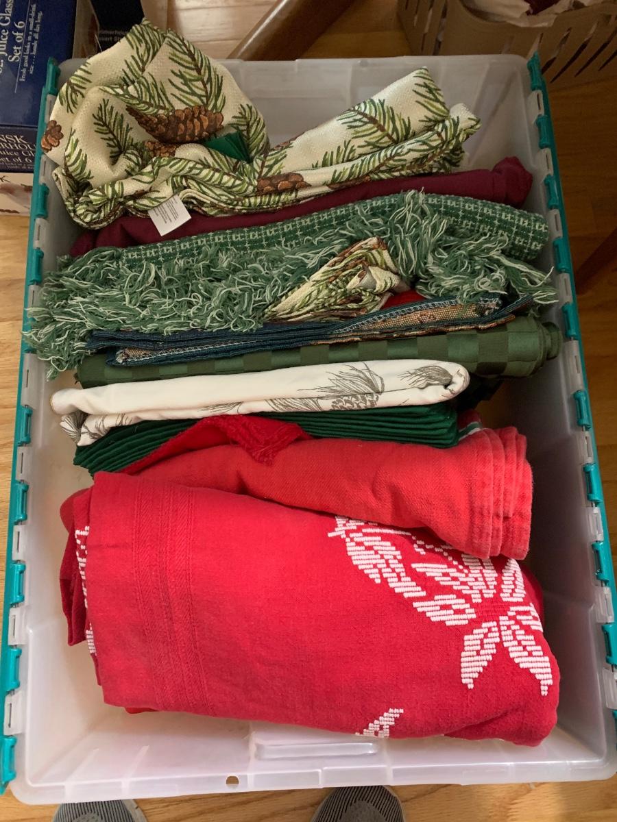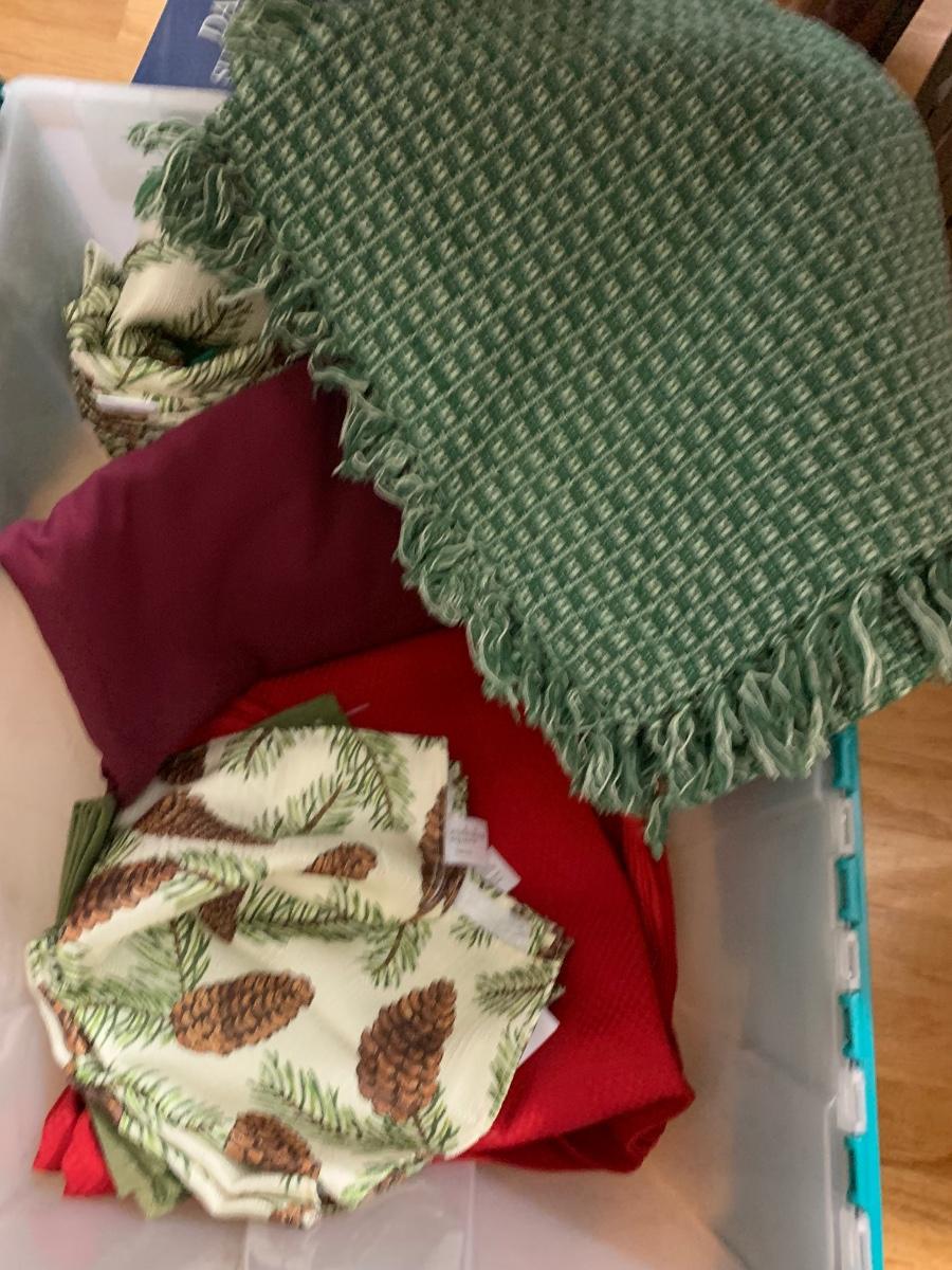 Large Tub - Christmas Dining Linens Lot - Table Runners Tablecloths Napkins Placemats