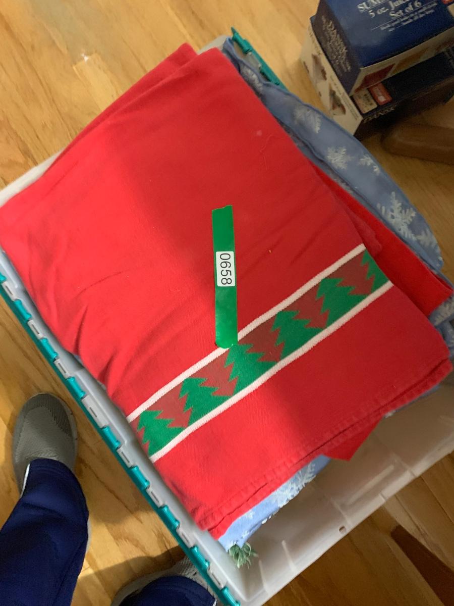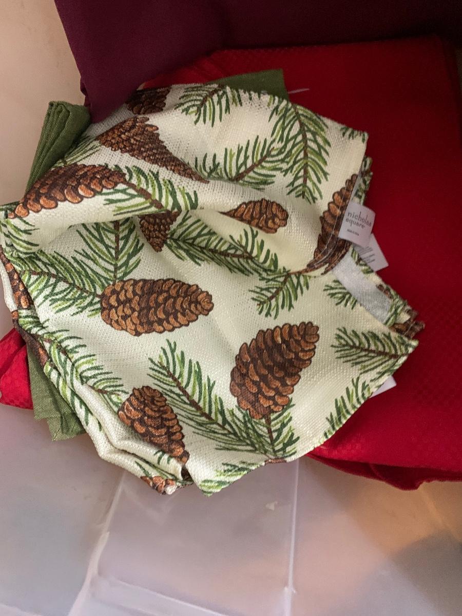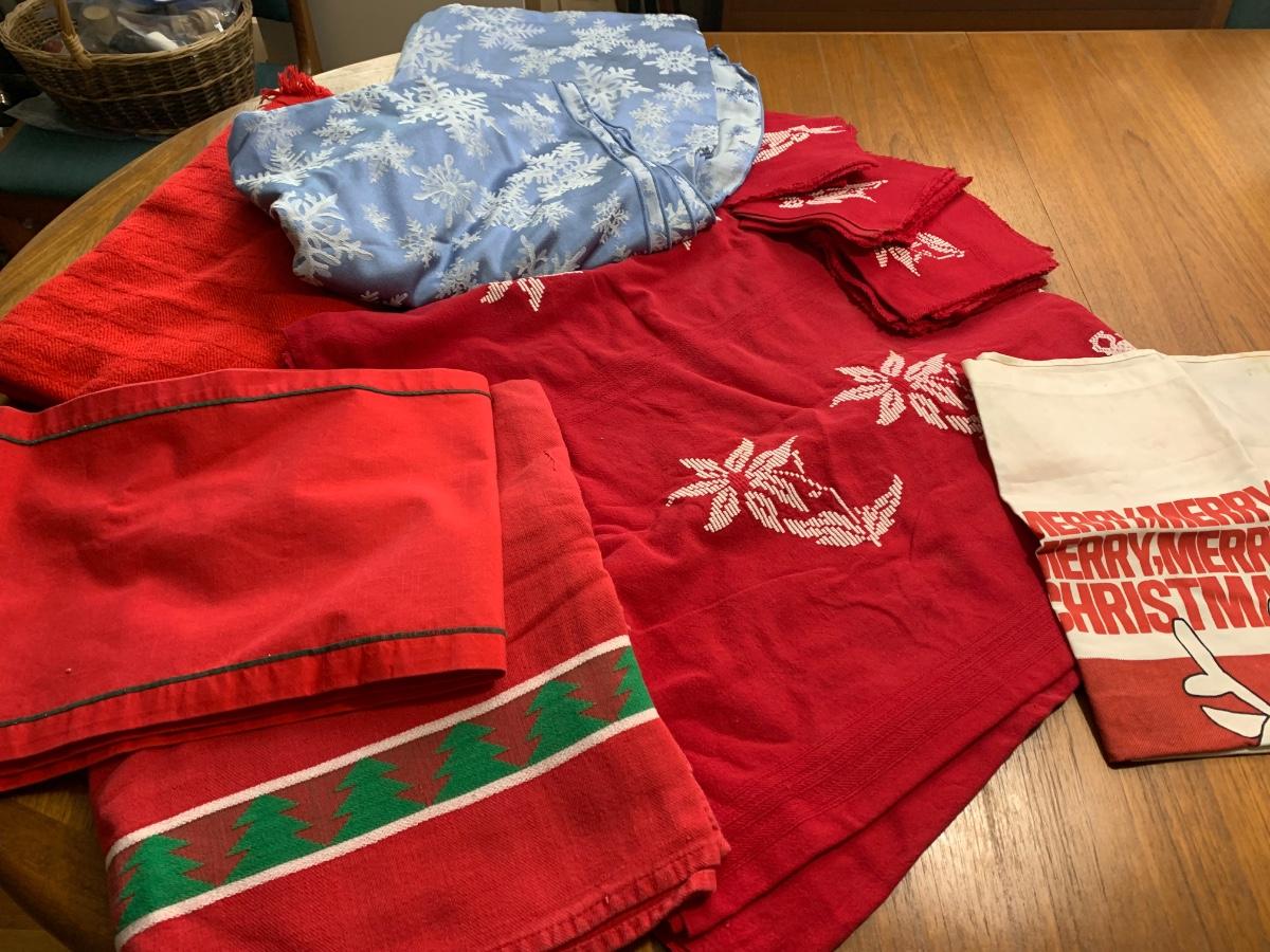 Large Tub - Christmas Dining Linens Lot - Table Runners Tablecloths Napkins Placemats