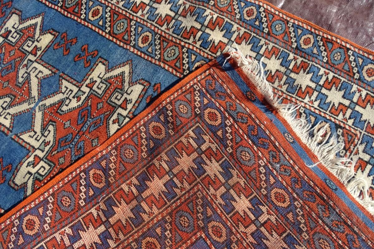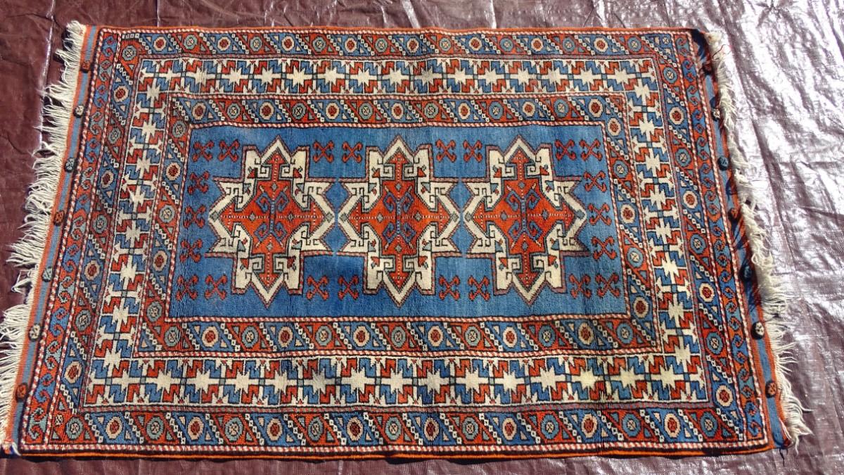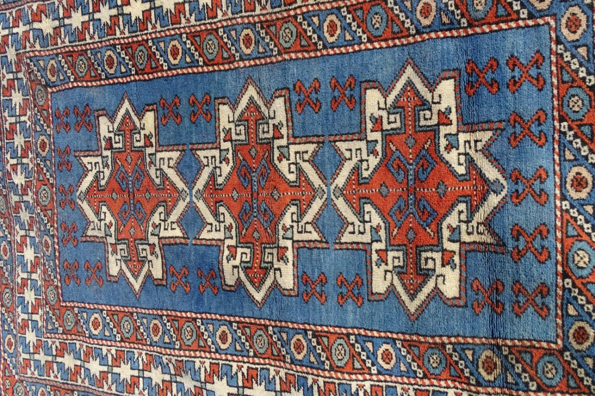 Large Turkish burgundy and slate blue wool rug; flat weave, hand made