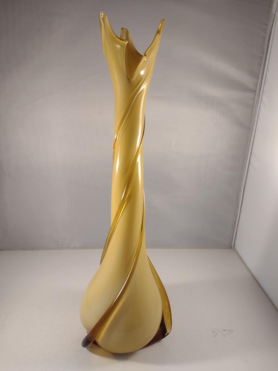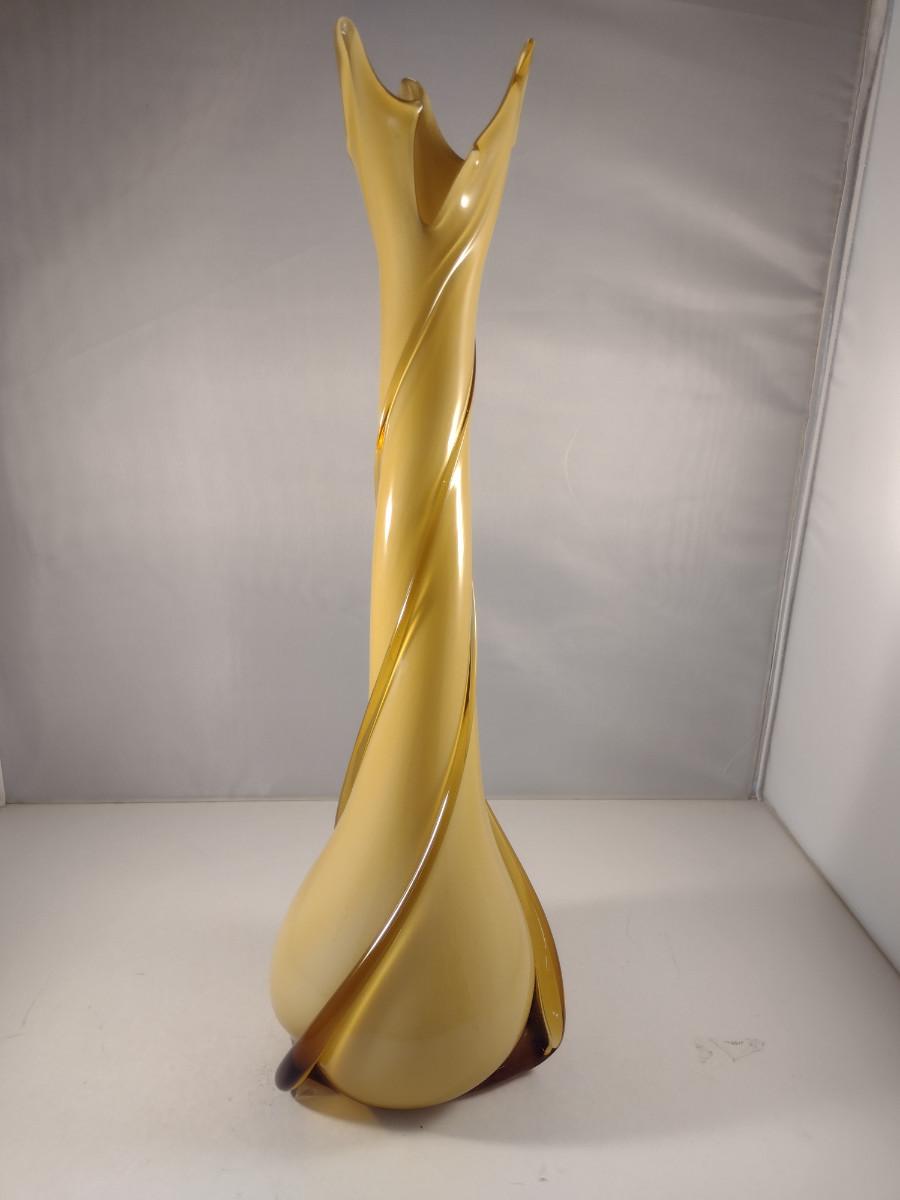 Large, Turned Design Art Glass Vase- Approx 18" Tall (#9)