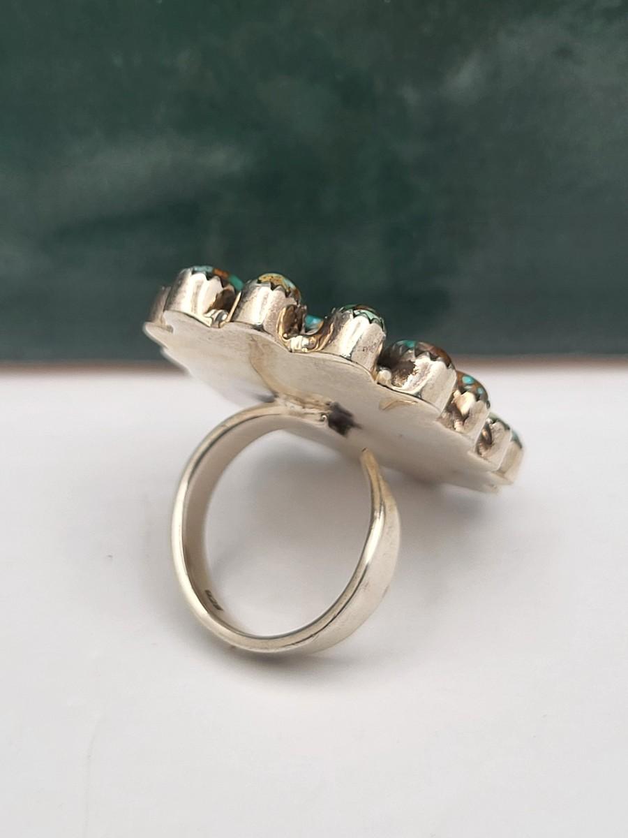 Large Turquoise Cluster Ring 925 Silver 20gr