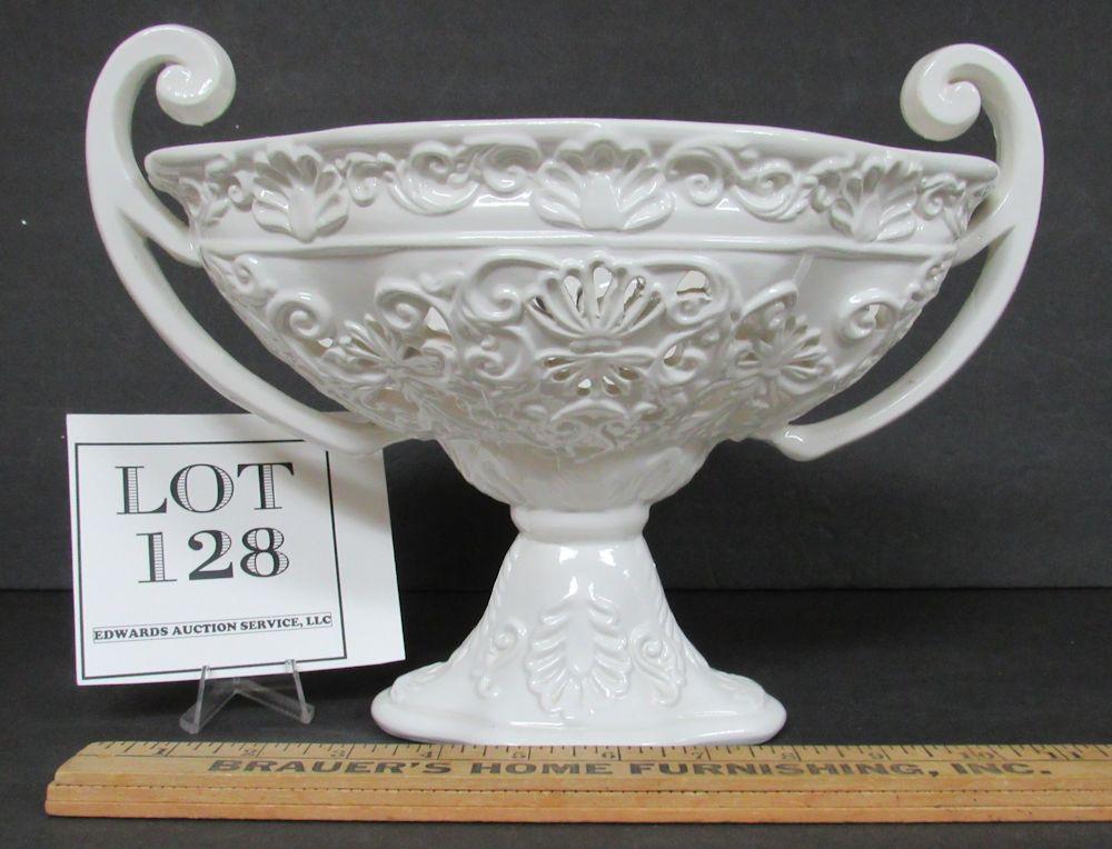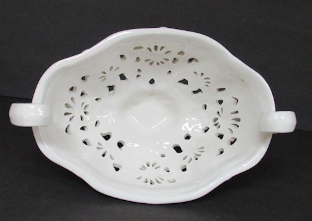Large Two Handled Bowl, Ardalt Italy, Moresco Blanco 5943, Pierced Design