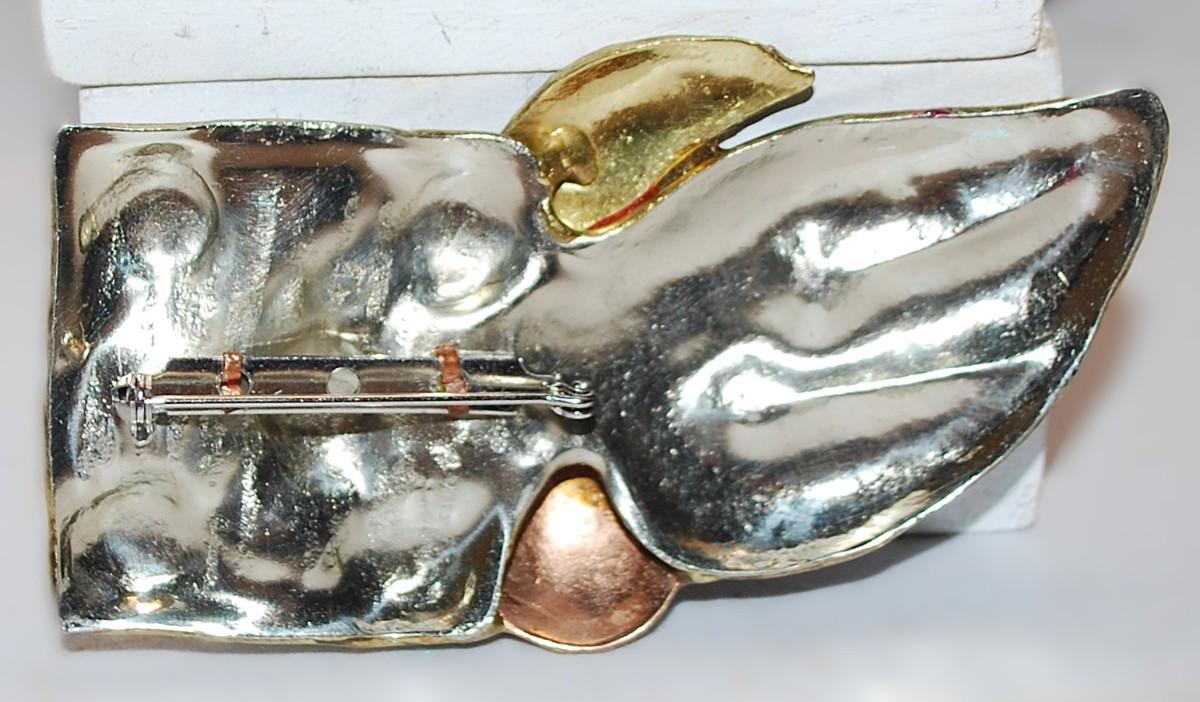 Large Unique Designed Cranberry RED BROOCH (3½" x 2") with Gold & Rose Gold Colored Accents on a Silver Tone Setting