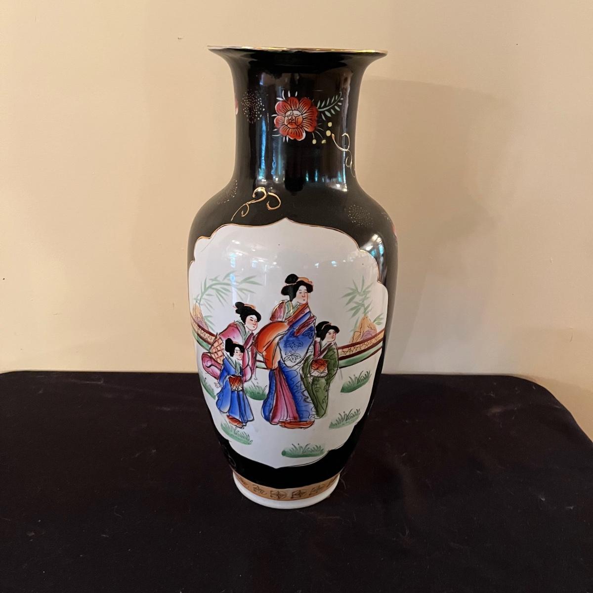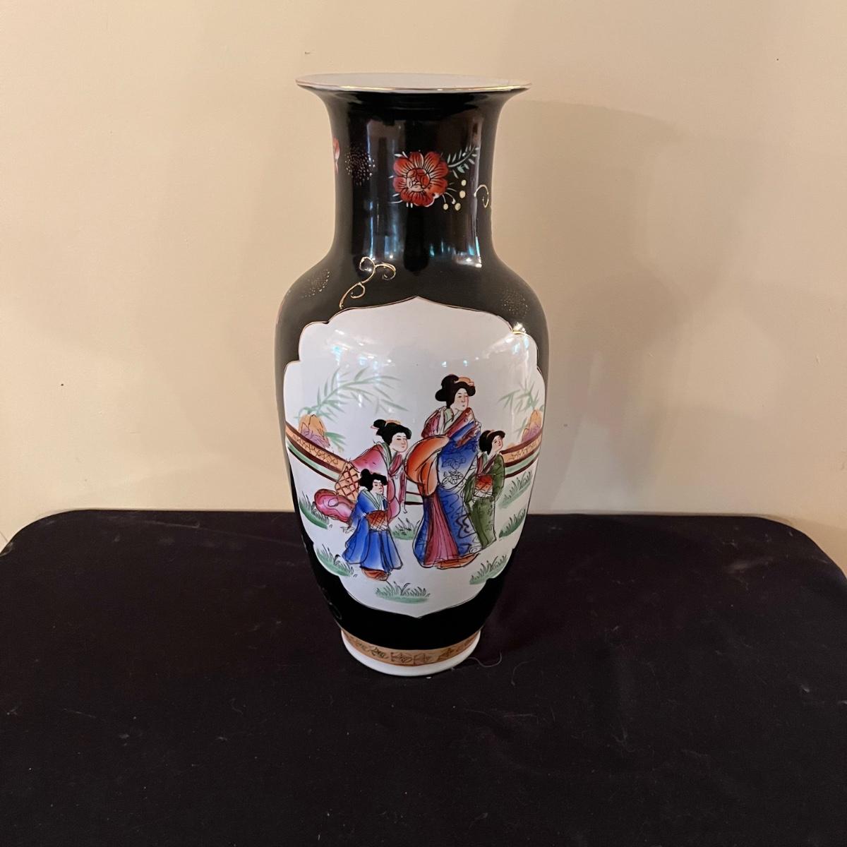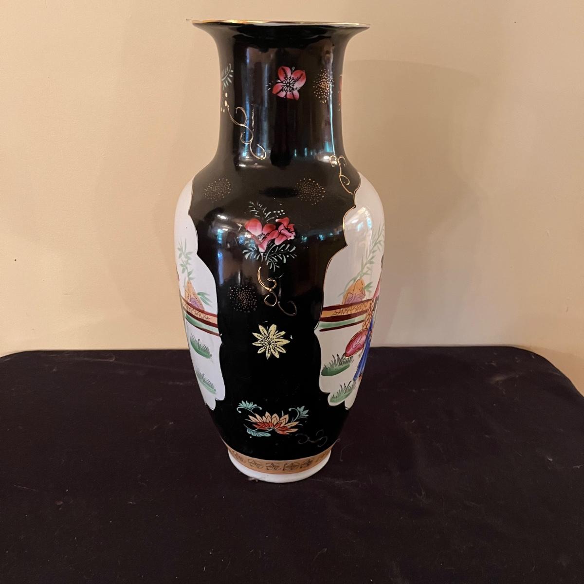 Lot includes a large ceramic urn with Asian design. In great condition with no chips, crazing or cracks. Urn measures 8”D x 18.5”.