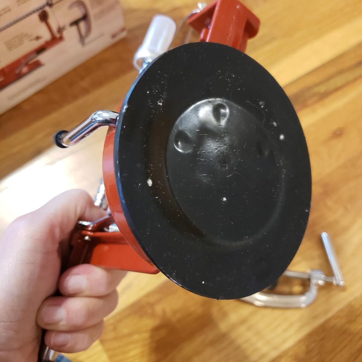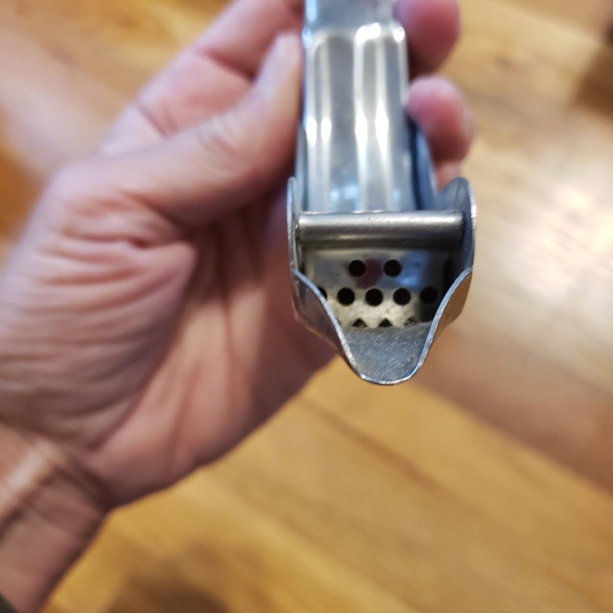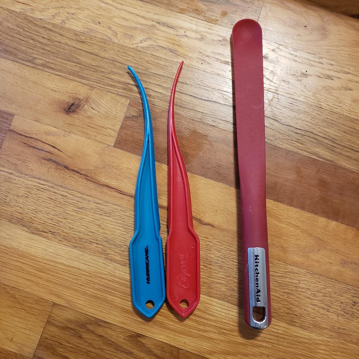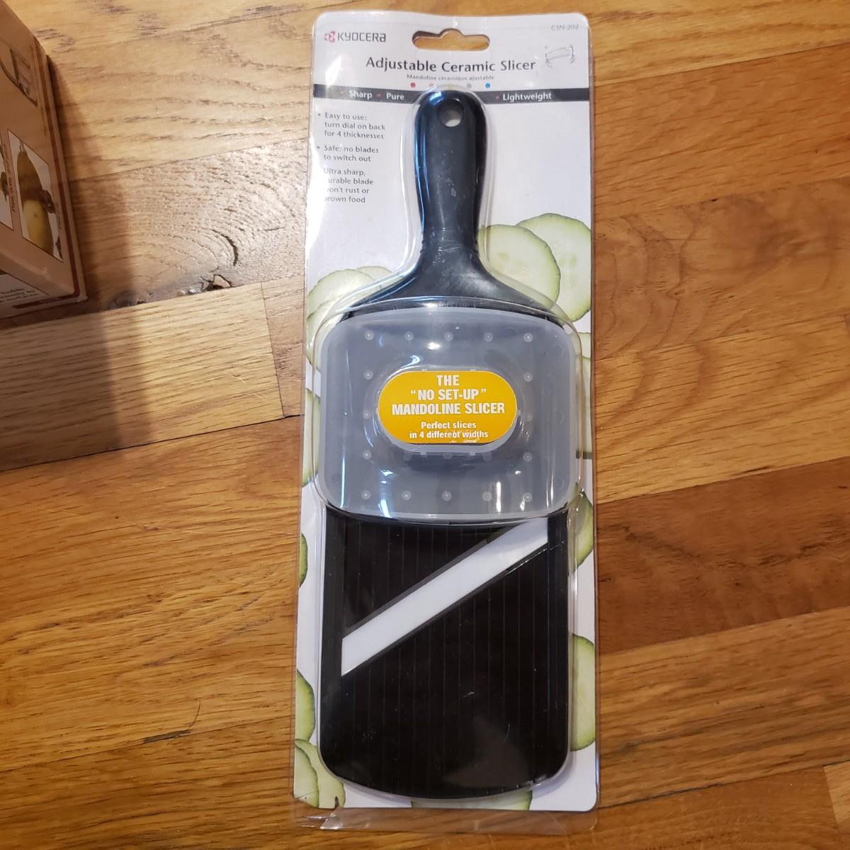 This is a large kitchen utensil lot. There is a three piece Thyme & Table set of knives. Also an OXO black spoon, draining spoon and noodle spoon. The Wusthof sharpener measures 9" x 3"H. The Norpro Apple Master looks barely used. See pictures for inventory and details.