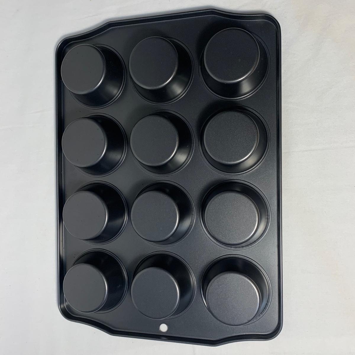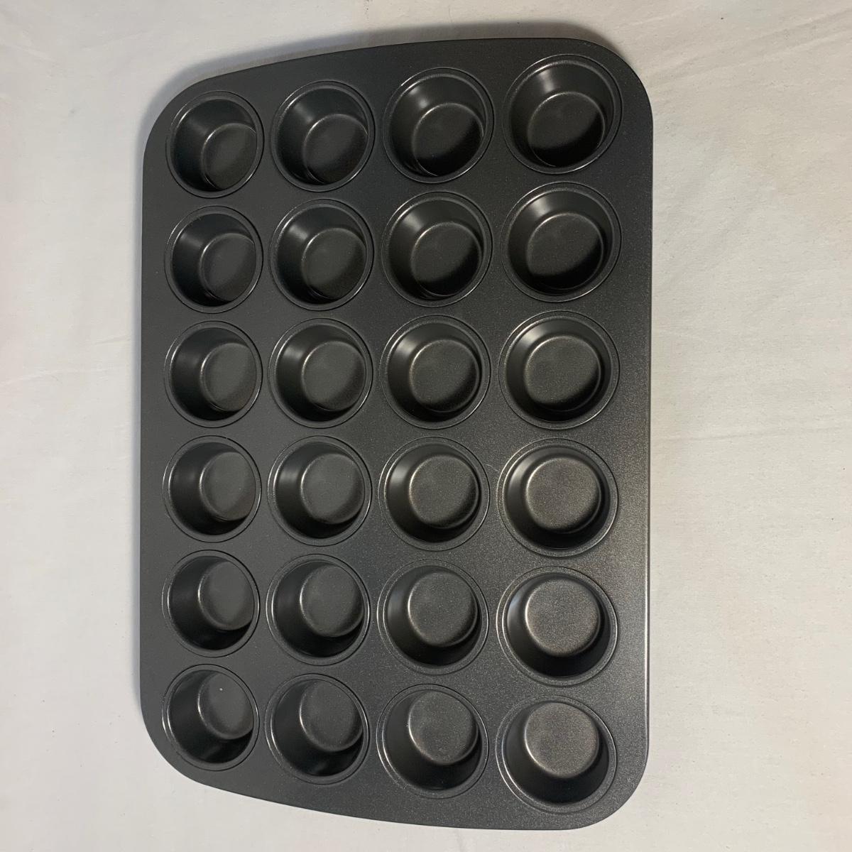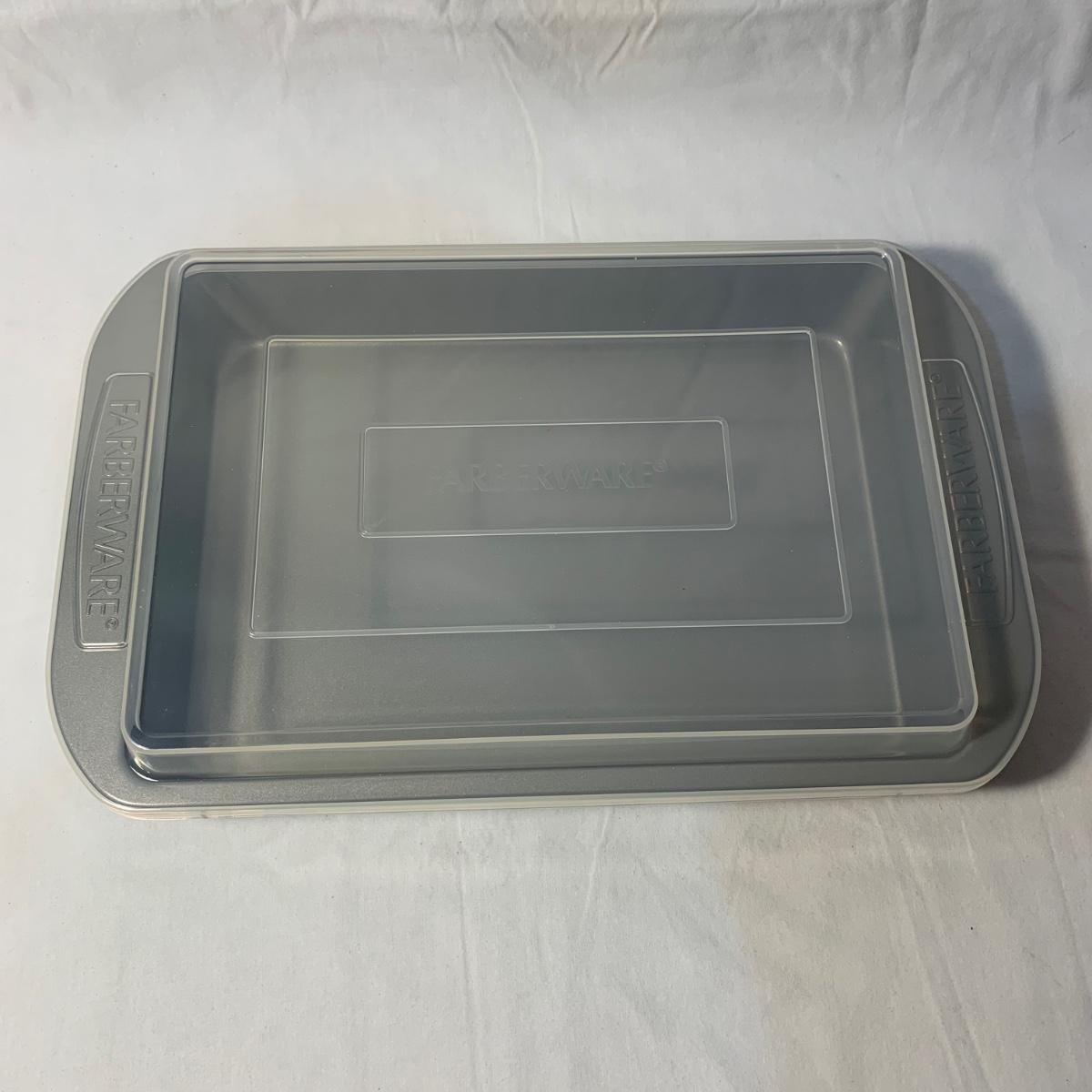 This lot includes a large variety of bakeware. You’ll find eight mini Bundt pans, six muffin pans, a springform pan with glass bottom, four roasting pans, one lidded baking pan, two cookie sheets, one deep roasting pan and more! Most items show signs of use. See photos for more details.