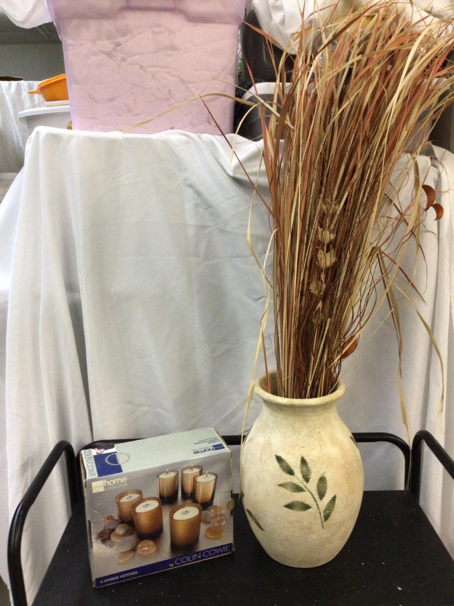 You get this great large pottery vase with grass decoration with this candle kit.