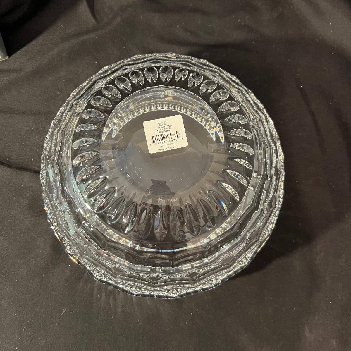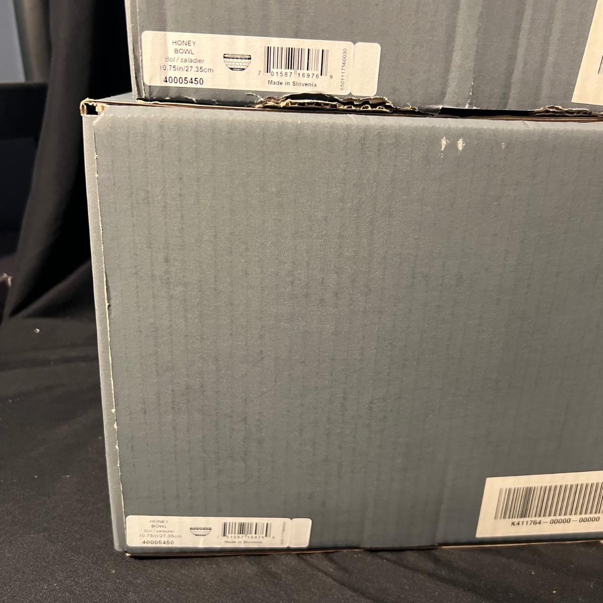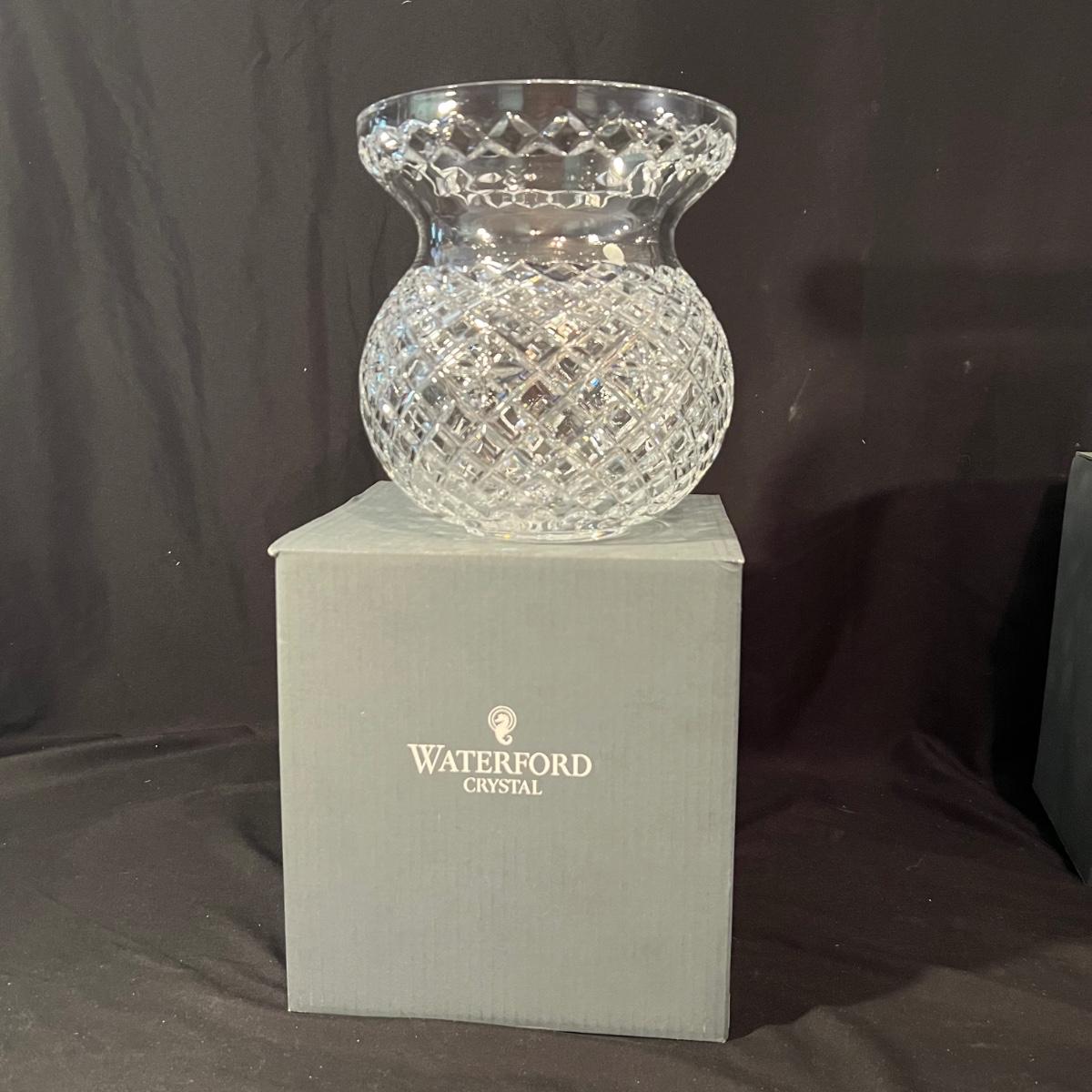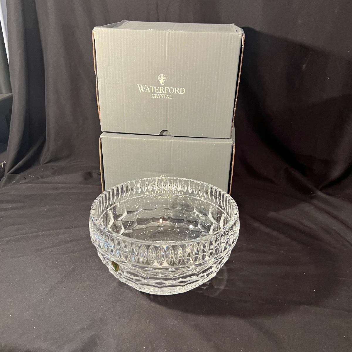 Seven large pieces of Waterford crystal here that all appear to be unopened except for us to photograph, therefore probably new in box. There are two matching Granville and two Honey bowls. See photos for full inventory and measurements listed on stickers. Shipping Available. Shipping can be costly. We suggest contacting our preferred local shipping provider, Postage Express, with dimensions and getting an estimate before bidding: 828-255-9250 or shipping@postageexpressnc.com