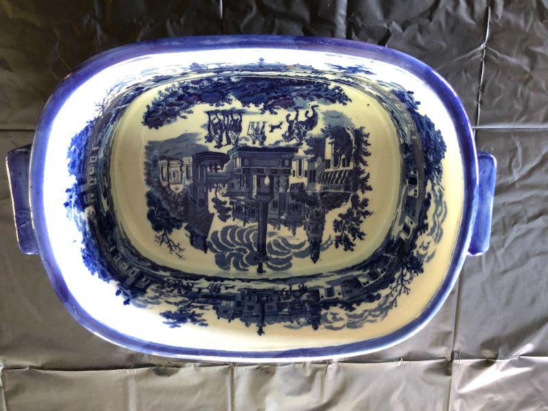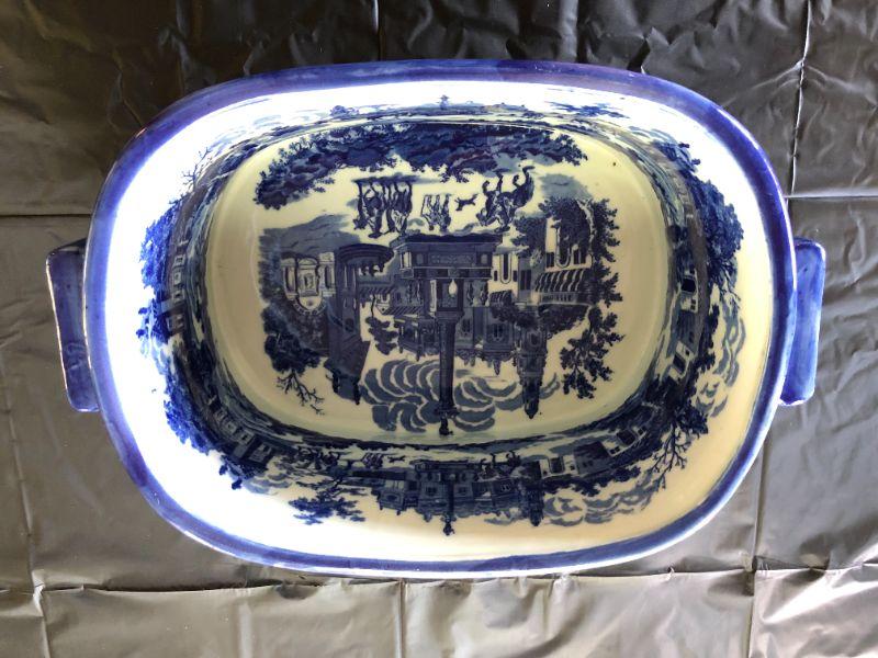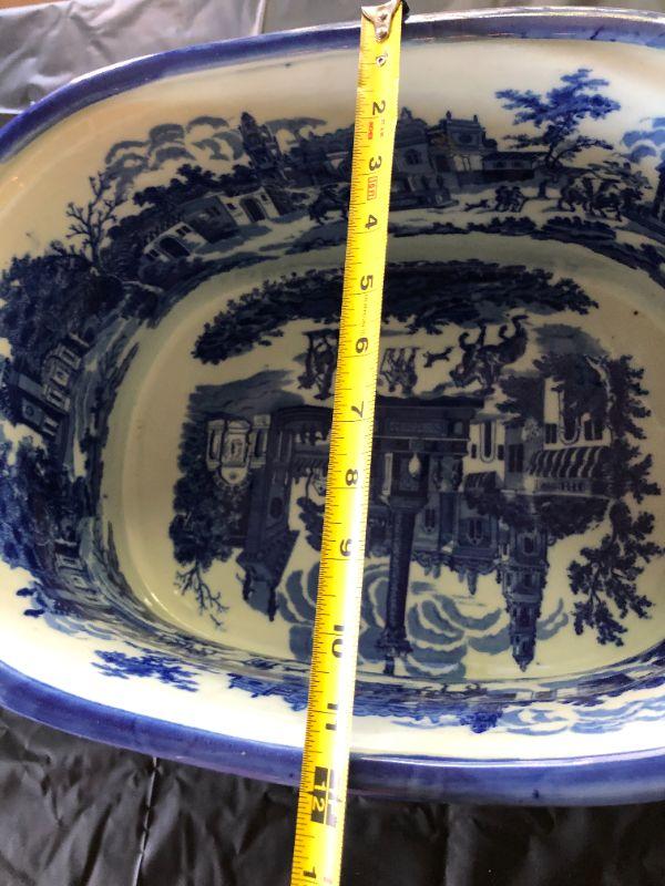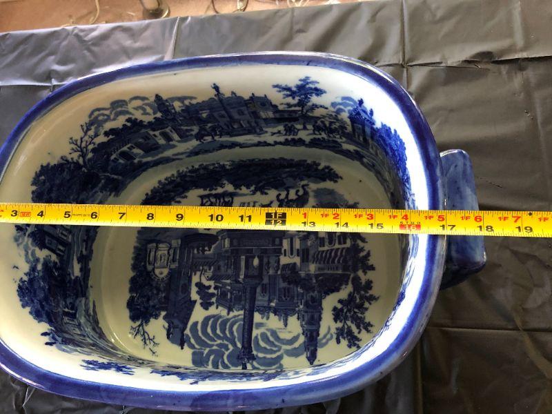 Large Victoria Ware Flow Blue Ironstone Porcelain Antique Planter or Foot Bath