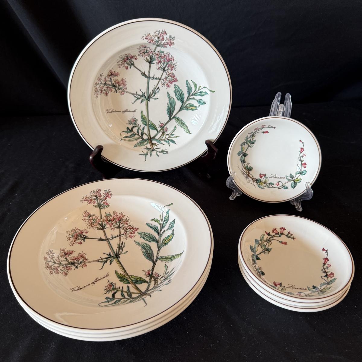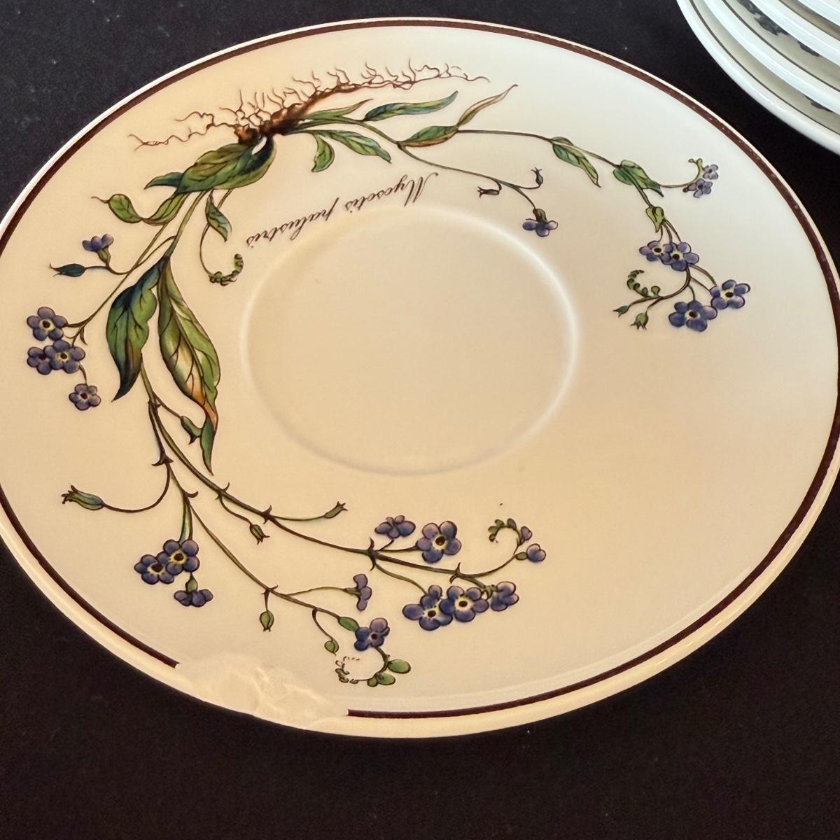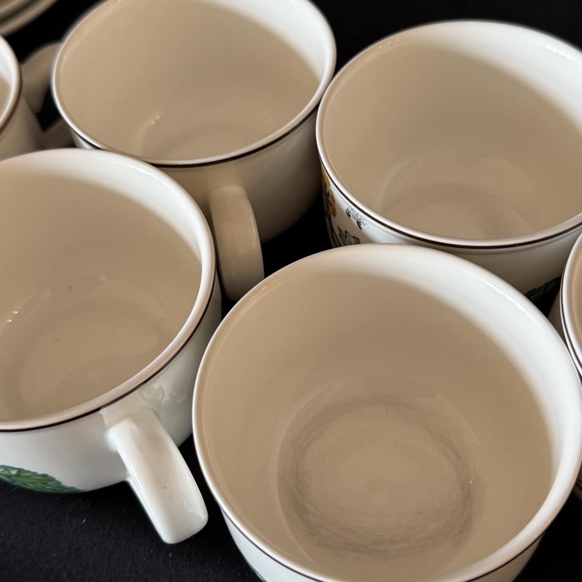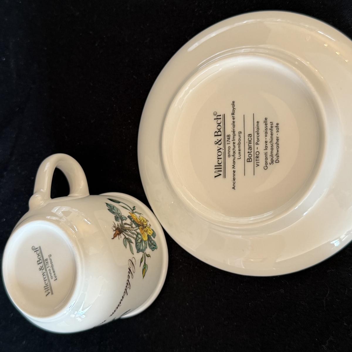 Large set of Villeroy & Boch ‘Botanica’ dishes includes over 60 pieces! Set includes a variety of plates, bowls, serving dishes, teacups, and more. One extra lid for the sugar bowl is included. For a size reference, the rectangular Viola Adorata dish seen at the bottom of the picture that includes the total lot inventory (picture #2), the dish measures 13.25” x 6.25”. Please see photos for inventory.