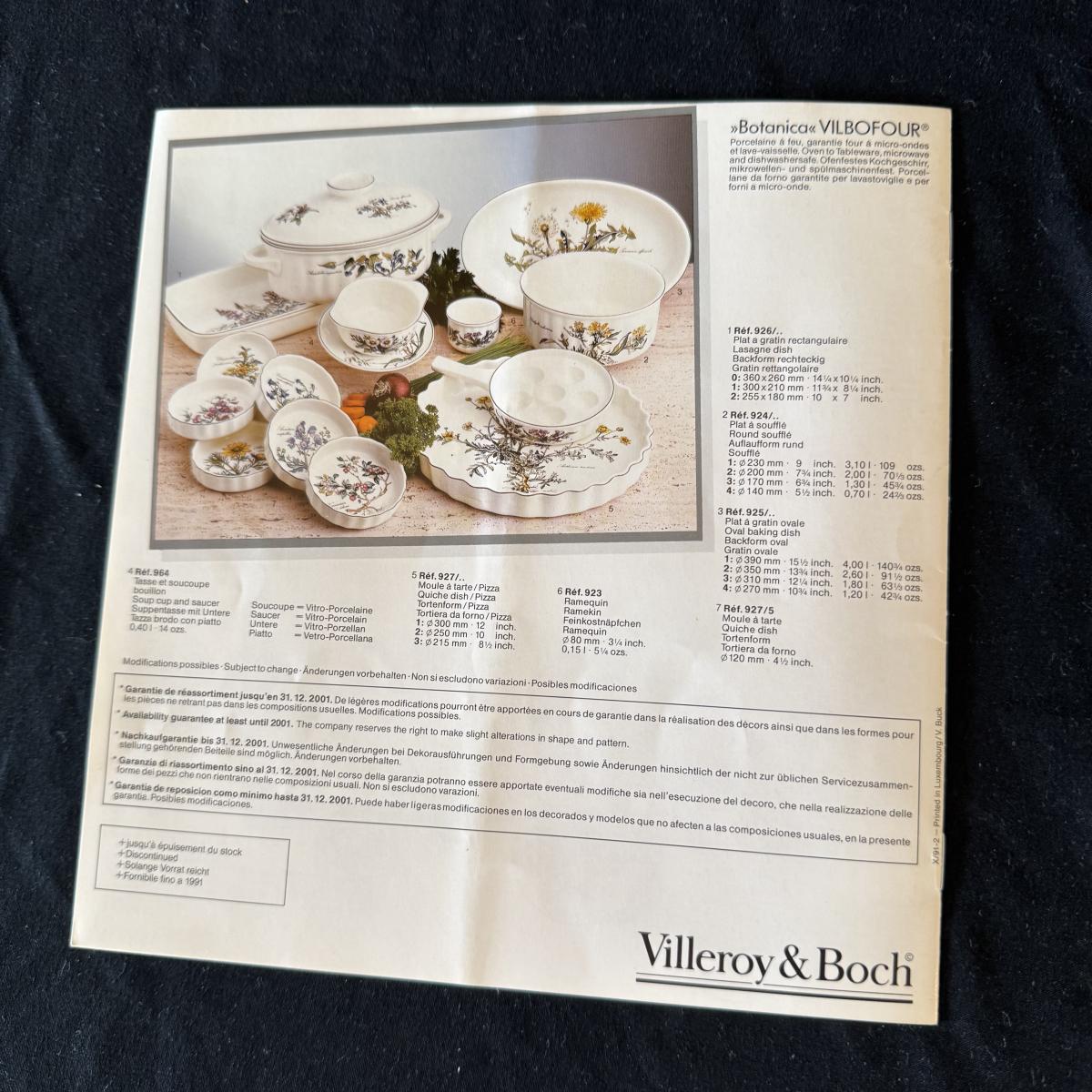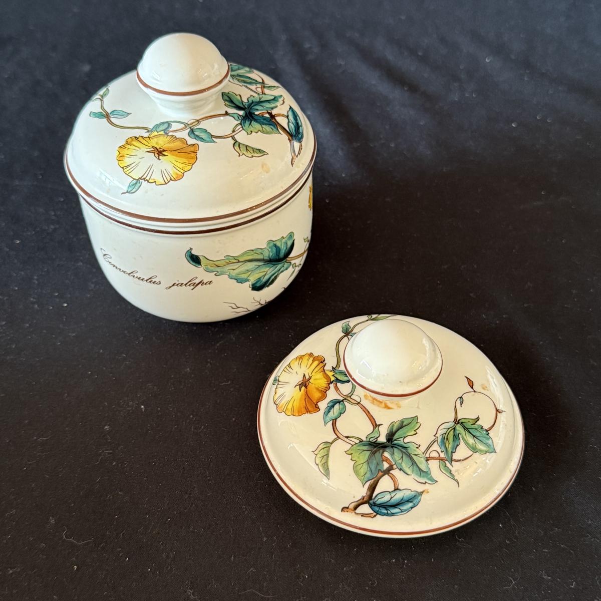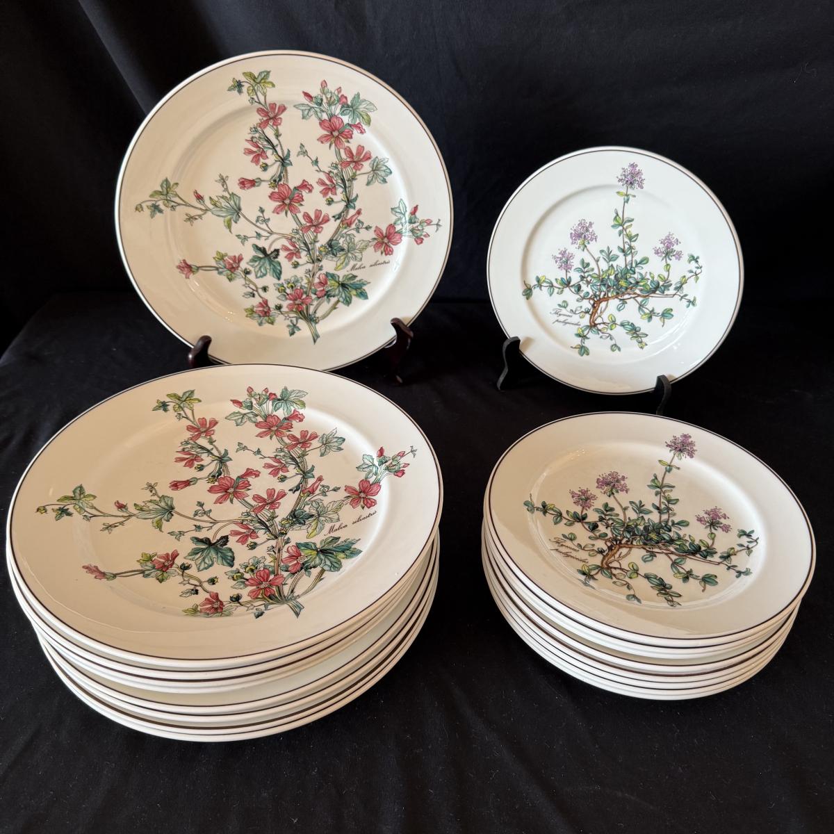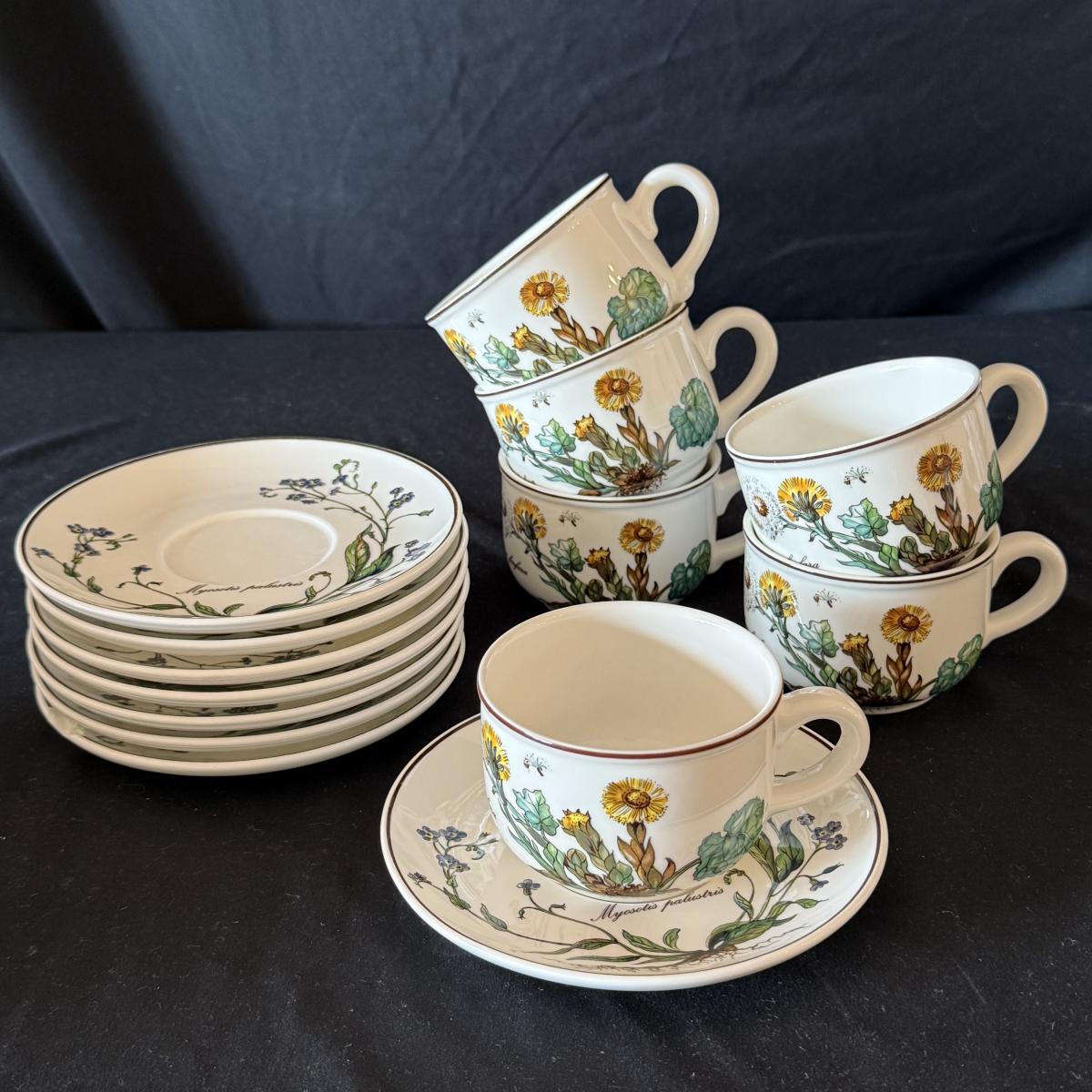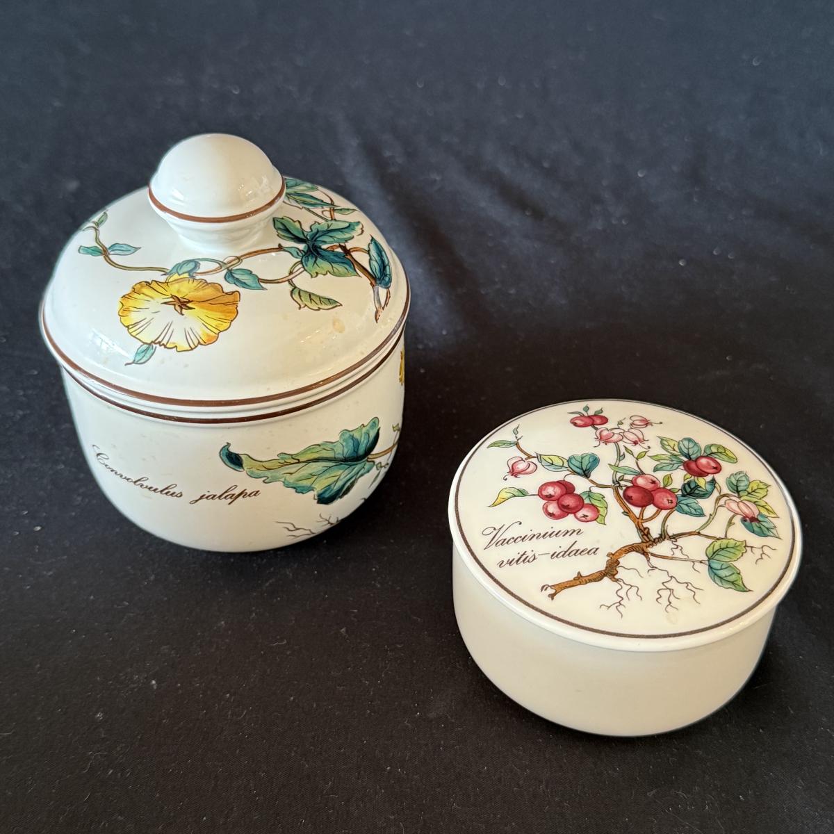 Large set of Villeroy & Boch ‘Botanica’ dishes includes over 60 pieces! Set includes a variety of plates, bowls, serving dishes, teacups, and more. One extra lid for the sugar bowl is included. For a size reference, the rectangular Viola Adorata dish seen at the bottom of the picture that includes the total lot inventory (picture #2), the dish measures 13.25” x 6.25”. Please see photos for inventory.