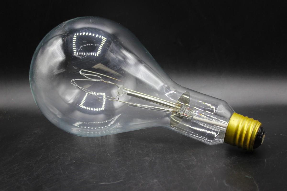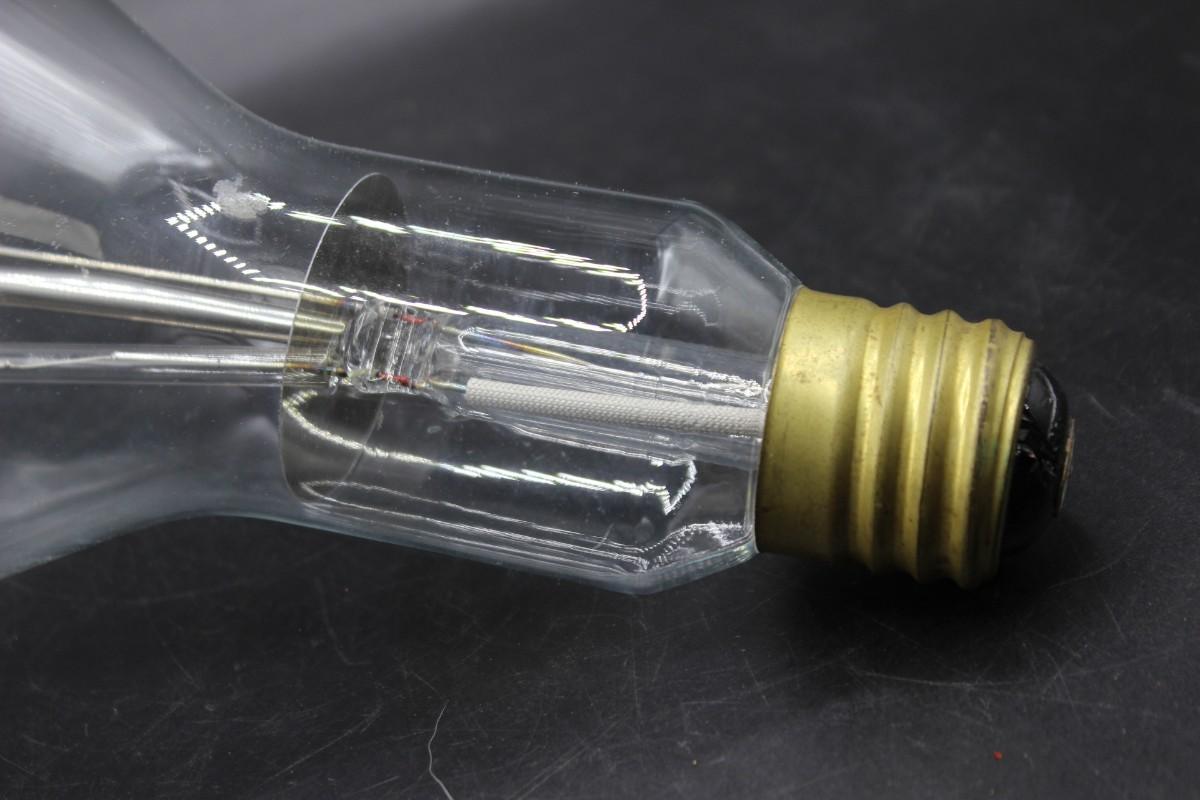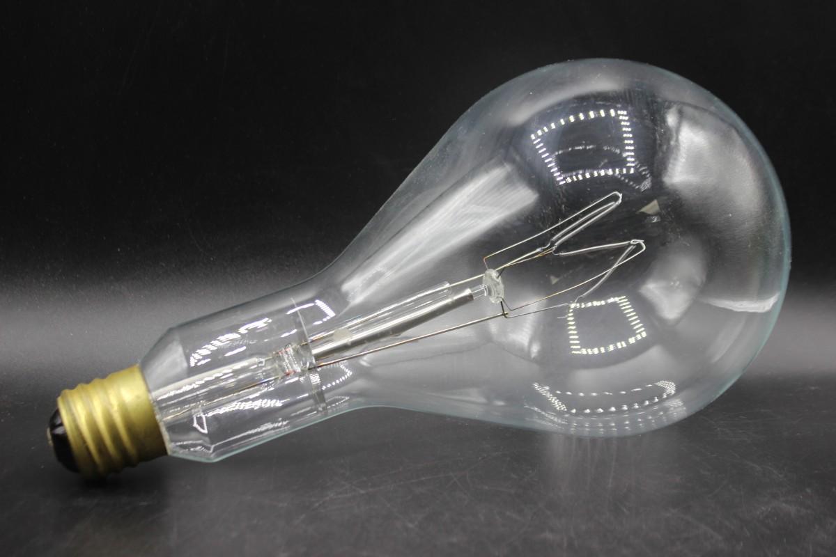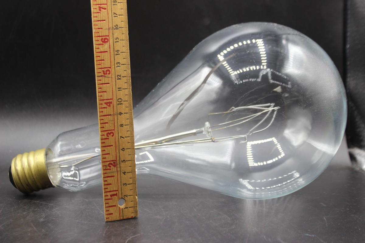 Large Vintage 1500W 130V Glass Bulb, there is no significant damage to the glass and is in overall good displayable condition. Has not been tested, check pictures for more details and for scaling. There is a small broken tube near the base inside the bulb.