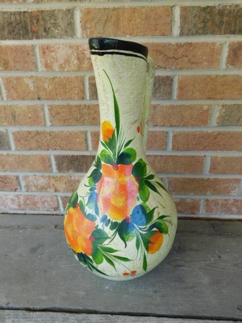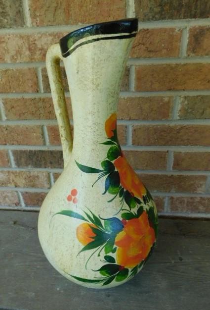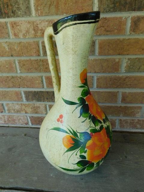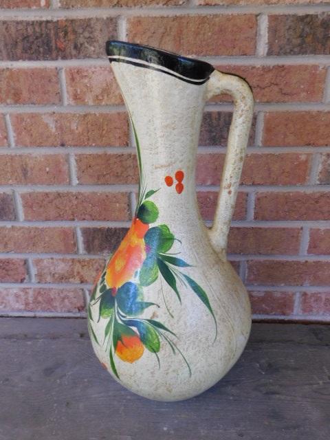 Large Vintage 19" Pitcher Pottery Floor Vase Hand Painted and Signed