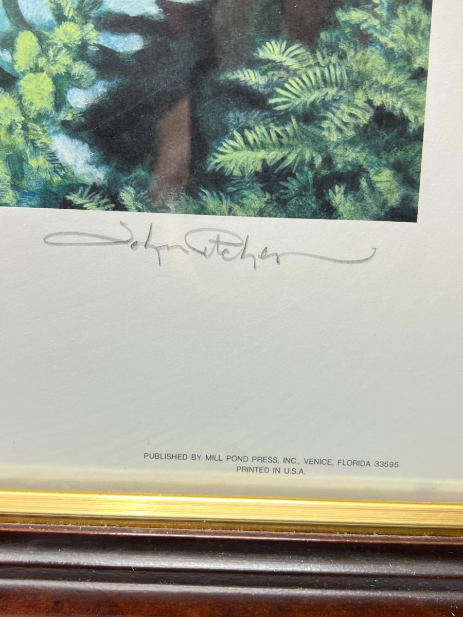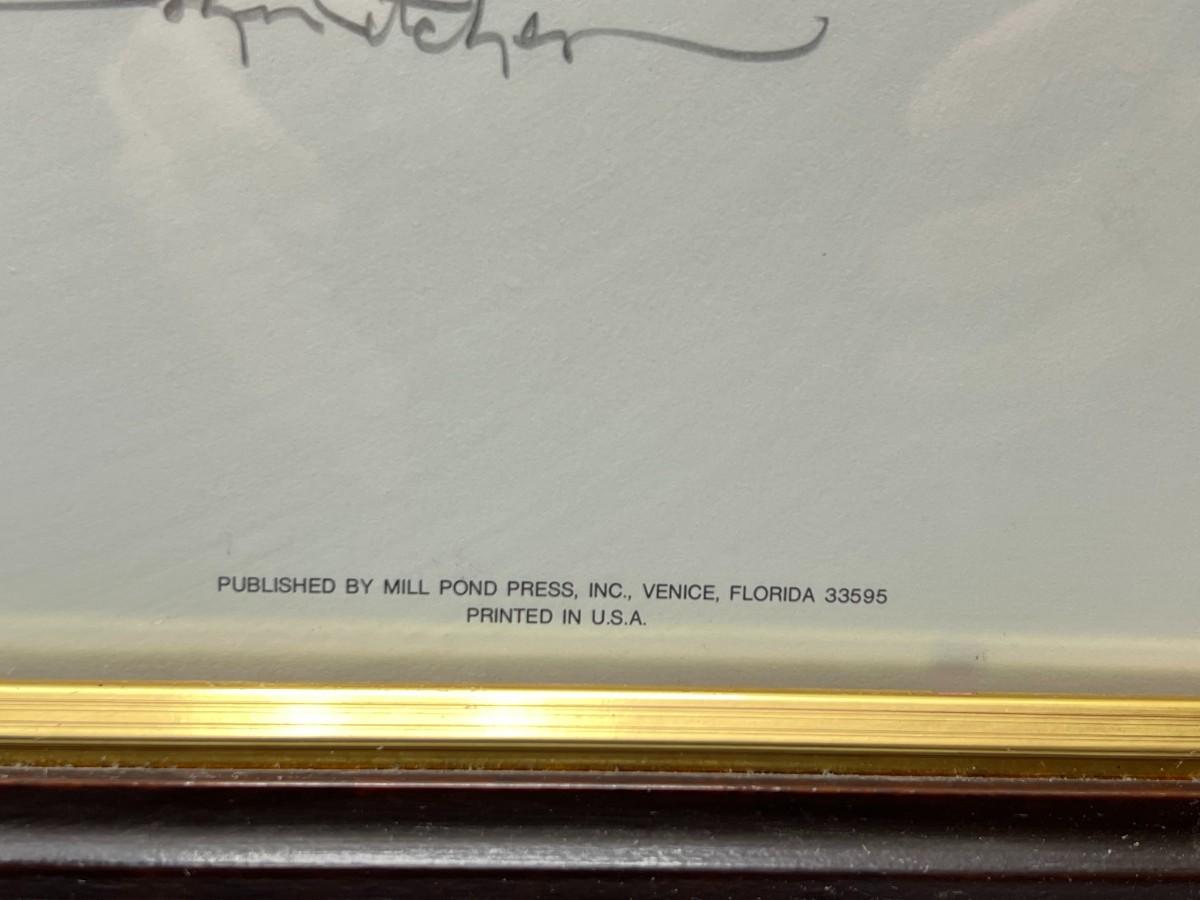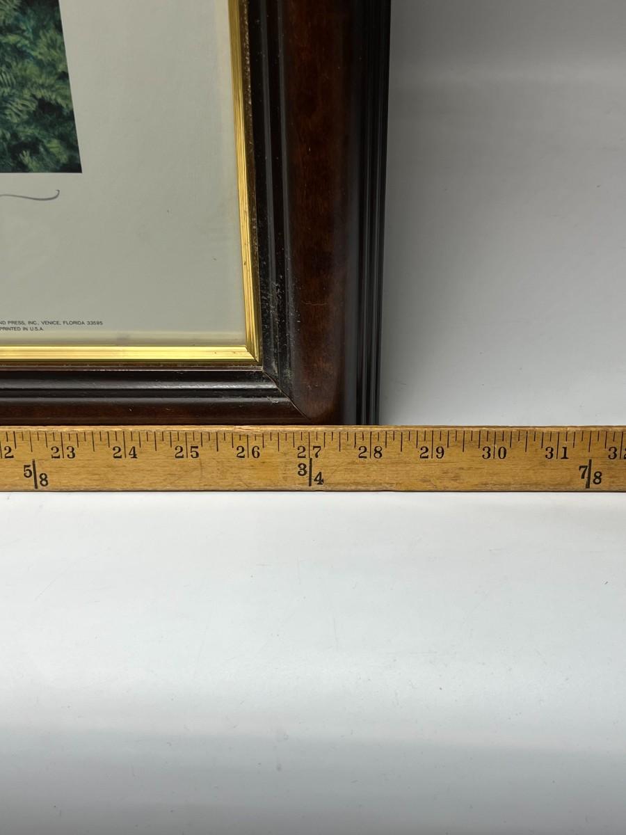 There is no significant damage to the frame or the print and is in overall good collectible or displayable condition. Check pictures for more details and for sizing.